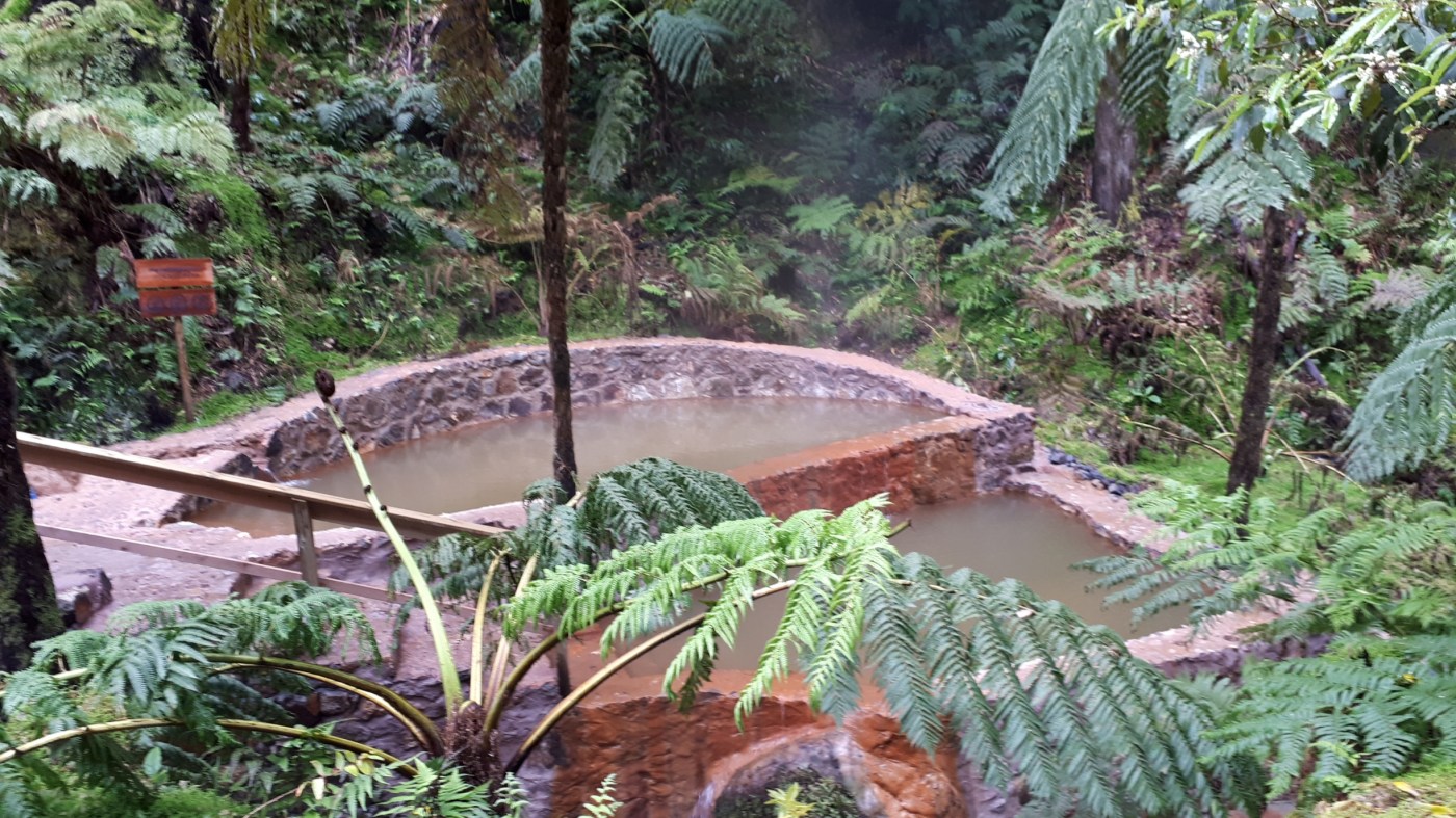 Eigentlich sind wir ja für ein Tennisturnier hier. Aber es zieht ein Regengebiet nach dem anderen über die Insel und wir müssen uns etwas überlegen, um das Warten zu überbrücken. Zum Glück bietet Sao Miguel an mehreren Stellen eine tolle Möglichkeit: Baden in heißen Thermalquellen.