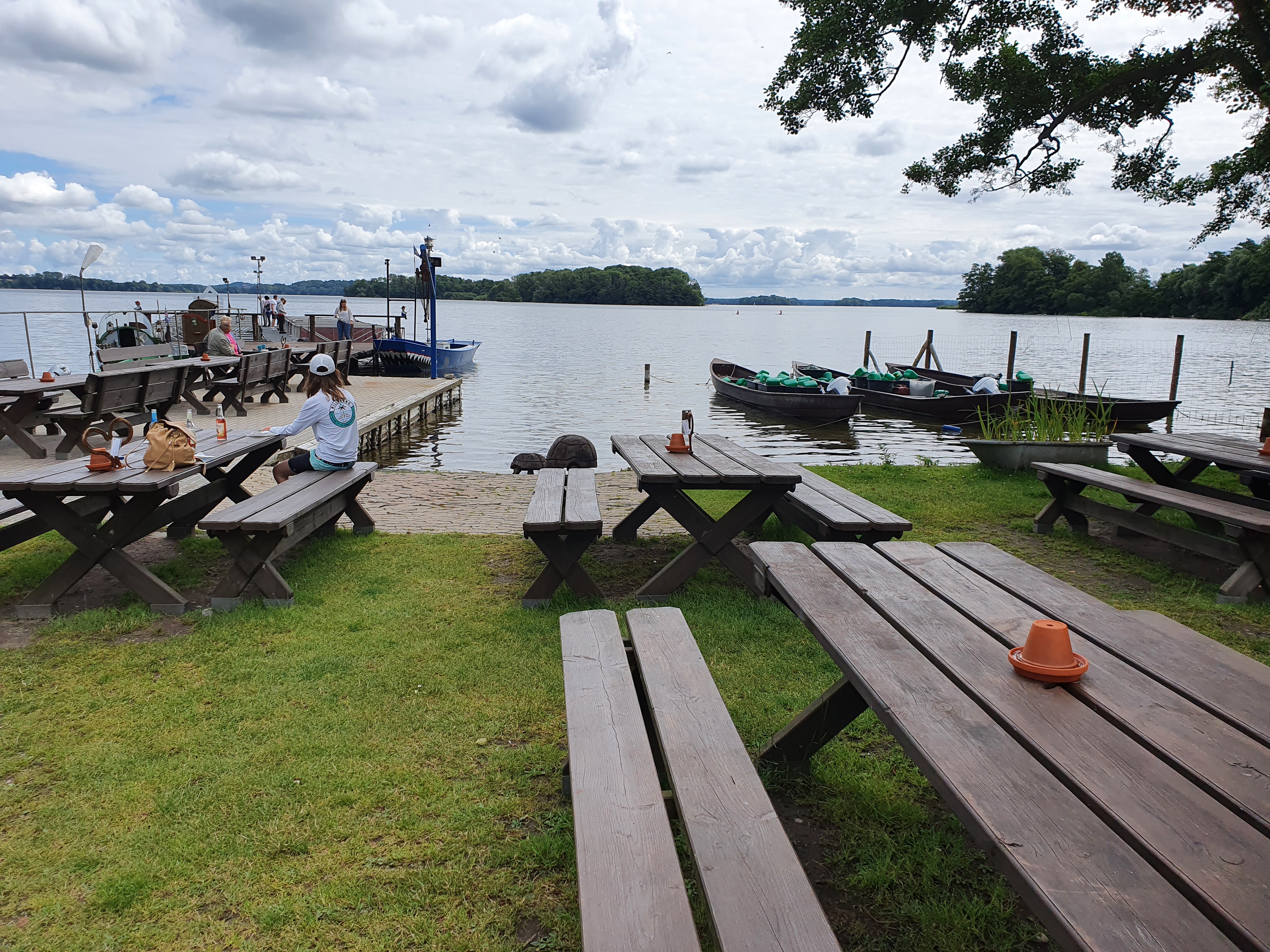 Wir erhielten ein Apartment im Nebengebäude, inmitten des riesigen Gartens. Der Blick vom Balkon: ein Traum! Zwischen uns und dem Edebergsee lediglich eine große Wiese, mitunter bevölkert von einer Schar Gänse, und ein romantisches Bänkchen. Abend für Abend saßen wir hier mit einem Gläschen Wein und waren dankbar, dass wir trotz Corona und Herrn Lauterbachs Schwarzmalerei in den Urlaub gefahren sind.
