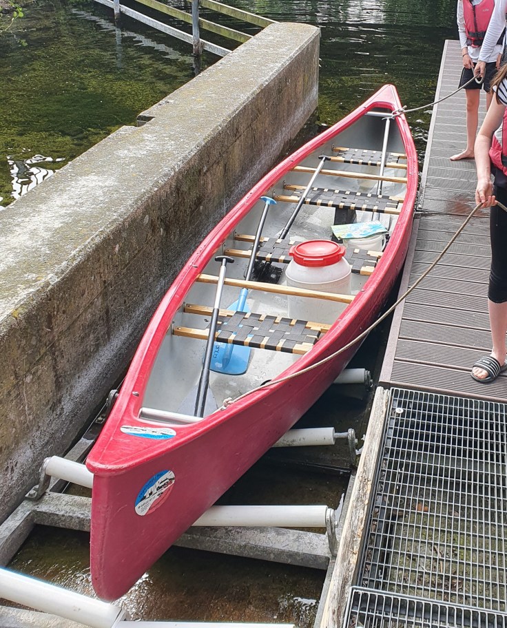 Die 5-Seen-Fahrt machen wir an unserem zweiten Tag. Das ist ganz nett, aber in unseren Augen kein unbedingtes „Muss“. Viel schöner ist es hingegen, mit dem Kanu, Kayak oder SUP selbst über die Seen zu paddeln. Das geht mit einem Leihgerät der Segelschule und Kanuvermietung Plön stunden- oder tageweise. Wir mieten einen Viererkanadier, im Mietpreis inbegriffen sind Schwimmwesten, eine wasserdichte Tonne, eine Kanuwanderkarte sowie eine gute Beratung, welche Tour die Richtige ist.