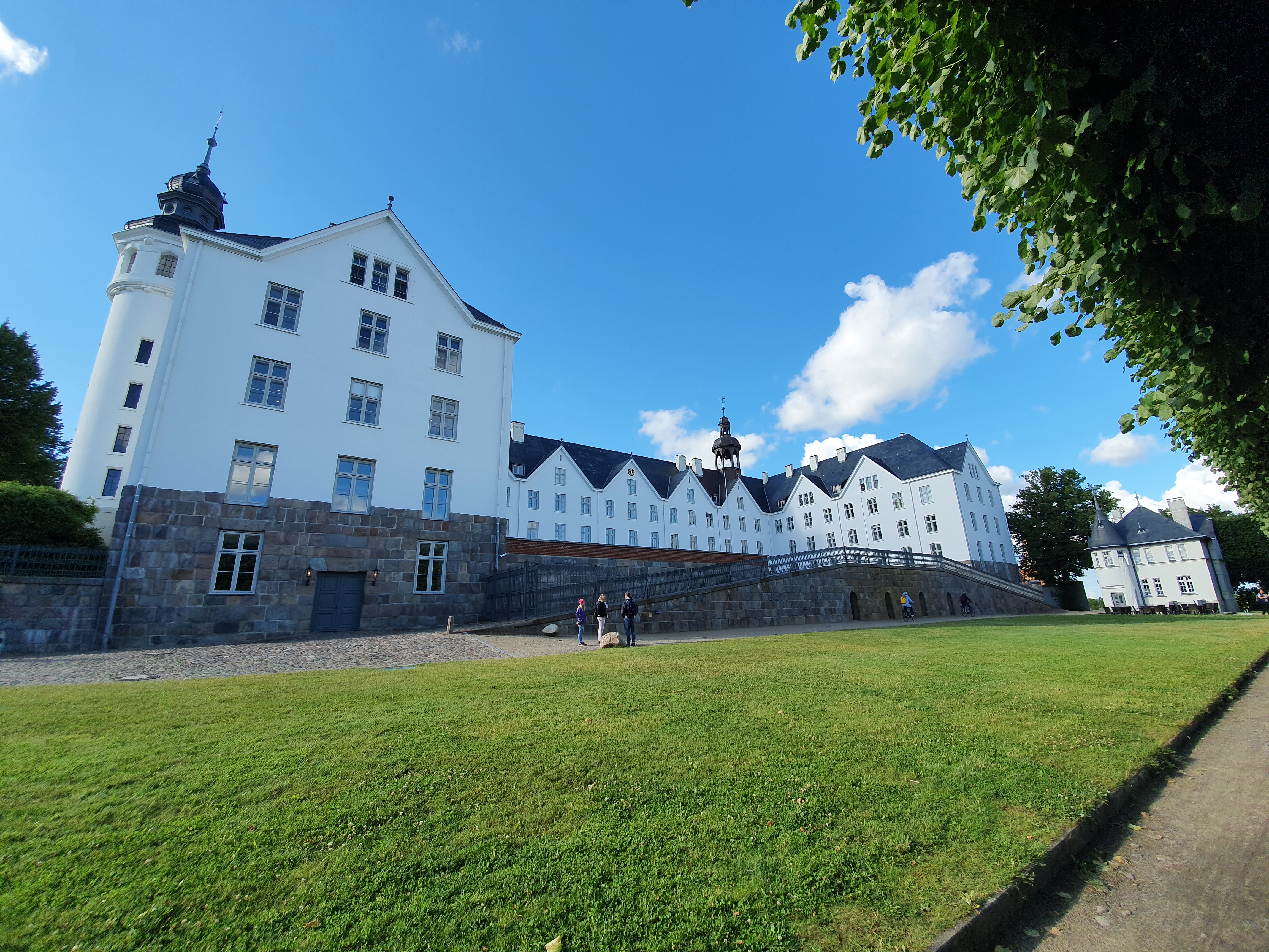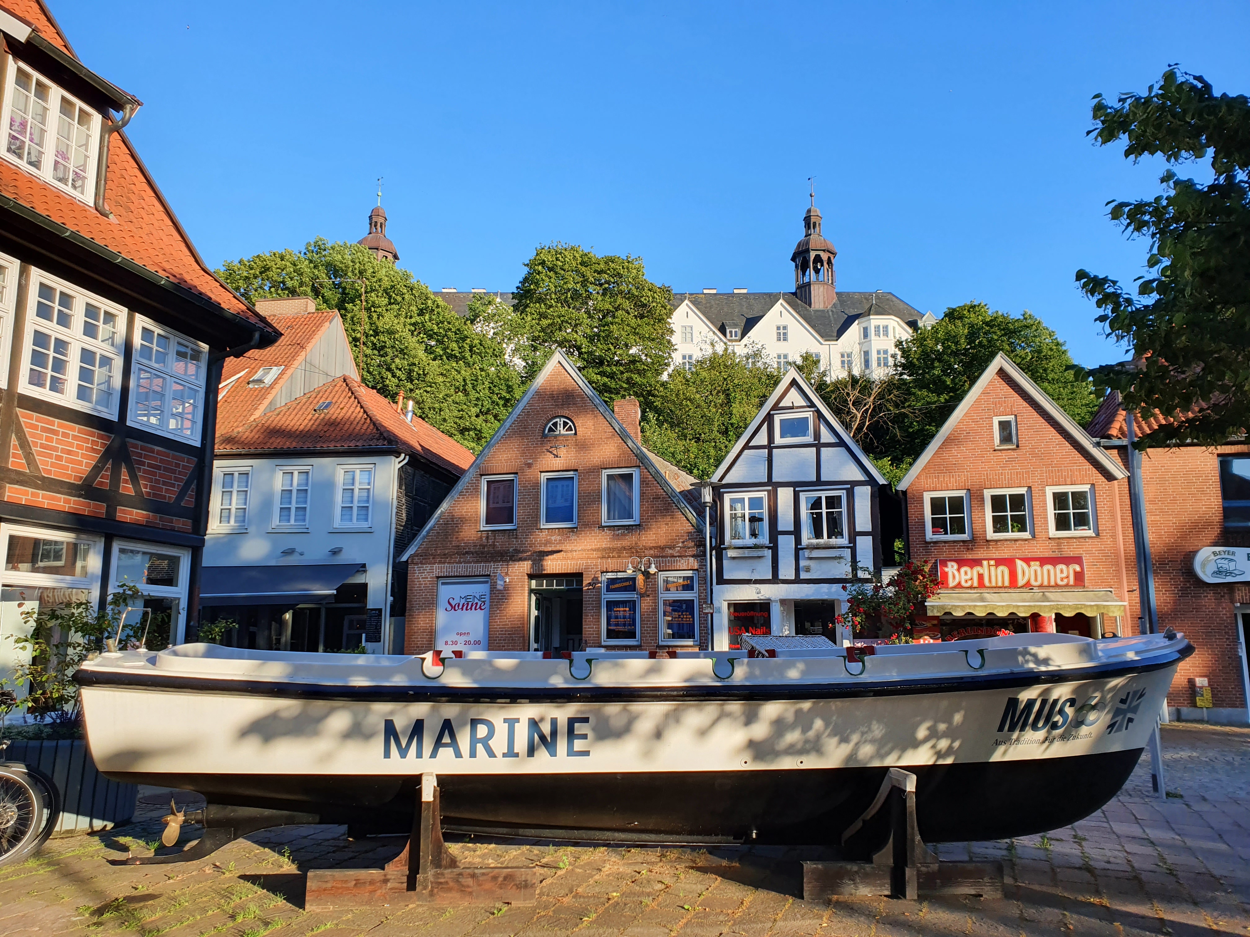 Auch sonst erweist sich die Kleinstadt Plön als gute Wahl, wenn man Wasser mag. Nur knapp acht Prozent des Stadtgebiets sind „Festland“. Ganze elf Seen gehören komplett zu Plön, an fünf weiteren hat das Städtchen Anteile – Plöner Seenland ist also eine gut gewählte Bezeichnung! Unser Hotel liegt auf einer „Landenge“, der ehemaligen Zollstation Fegetasche, weil hier die Taschen vom Zollmeister leergefegt wurden. Glücklicherweise ist das Hotel erschwinglich 😉