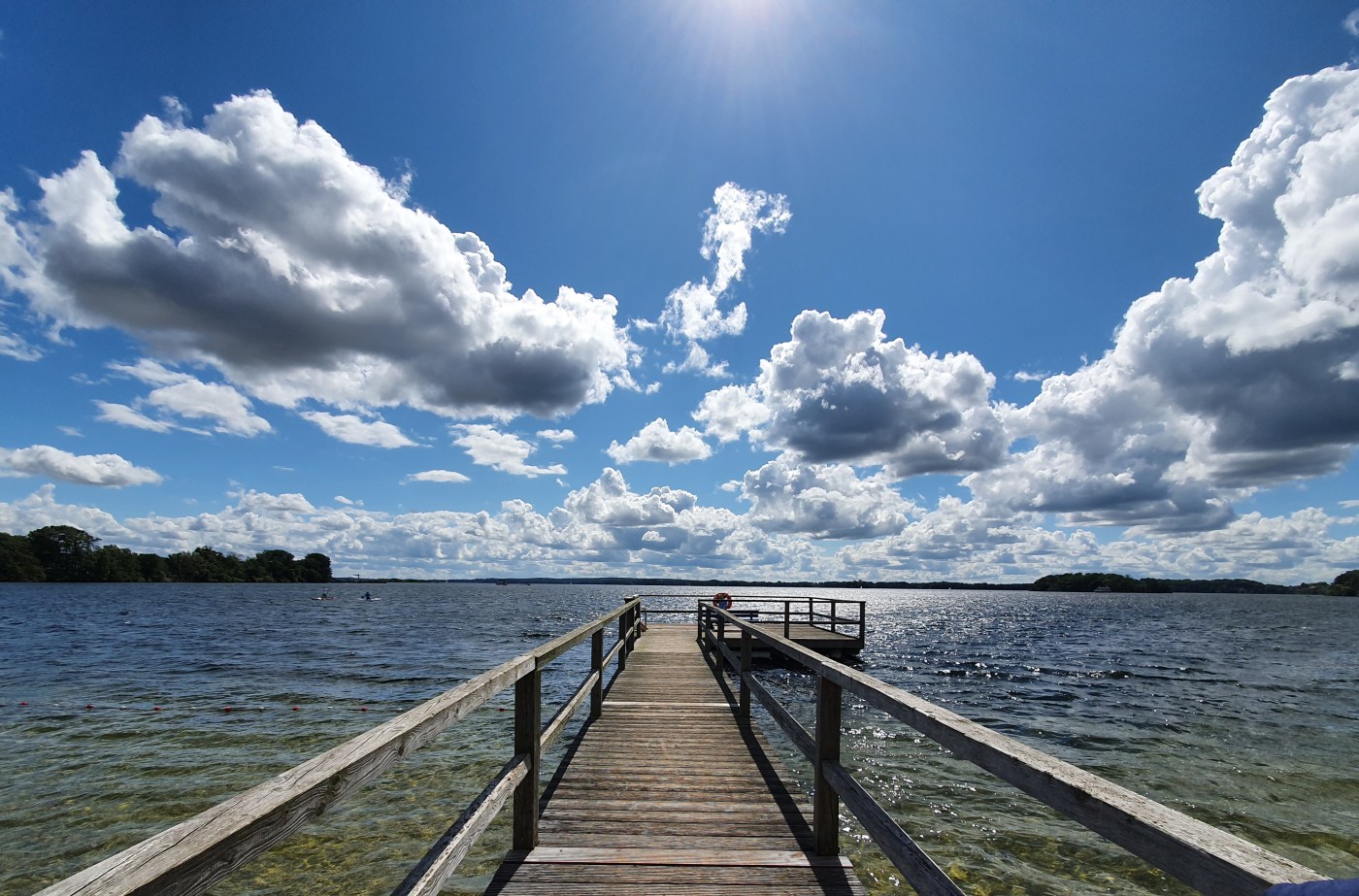 Direkt am Hotel startet die 5-Seen-Fahrt (2 Stunden lang über Edeberg-, Höft-, Behler-, Langen- und Dieksee nach Malente und wieder zurück), auf der anderen Seite der Landenge die Große Plöner Seerundfahrt über den immerhin zehntgrößten See Deutschlands. Neben dieser Anlegestelle befindet sich eine nette Minigolfanlage sowie ein schöner Tennisplatz (ich schwöre, das war Zufall, aber wir haben ihn gerne genutzt) und ein hübscher Badestrand. Baden in einem der Seen ist übrigens angenehmer als in der Ostsee: Das Wasser ist klarer und wärmer – und quallenfrei.