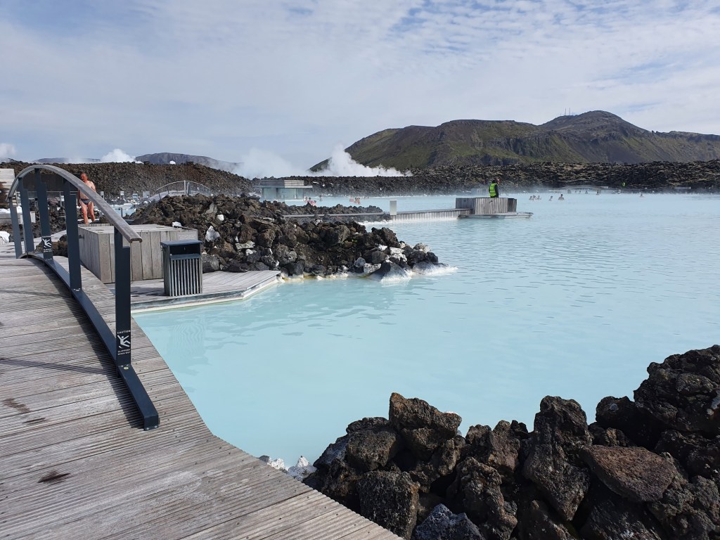 Baden in der blauen Lagune sieht sehr einladend aus und natürlich entspannend,