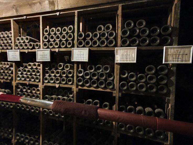 Wir sind beeindruckt ob der abwechslungsreichen und spannenden Geschichte unseres Hotels, die uns anhand eines kleinen Flyers vermittelt wird und wandeln noch ehrfürchtiger durch die geschichtsträchtigen Räumlichkeiten. Eigentlich hatten wir das Hotel nur wegen des schönen Ambientes und seines vielgelobten Restaurants ausgewählt, aber so viel Geschichte gefällt uns natürlich gut. Auch die Zimmer passen sich stilvoll in das Gesamtkonzept ein. Wir lustwandeln noch etwas im französischen Garten (dessen Bewuchs wohl zu Coronazeiten neu angelegt wurde und entsprechend „jugendlich“ wirkt) samt Forellenteich und Bachlauf, den Pool können wir leider jahreszeitenbedingt und den Tennisplatz zeitbedingt nicht nutzen. Abends speisen wir im gotischen Gewölbe des ehemaligen Kellers der Mönche, wo einst unter anderem Fässer des benachbarten weltberühmten Clos de Vougeot lagerten (übrigens ist das Dreigangmenü mit zahlreichen Wahlmöglichkeiten, Gruß aus der Küche und Naschereien am Ende für 62 Euro mehr als fair). Anschließend muss es noch einen Digestif in der ehemaligen mittelalterlichen Küche sein, die als einer der wenigen Räume die Zerstörung im 16. Jahrhundert überstanden hat, und wir fühlen uns weniger als Mönche, denn als „Gott in Frankreich“.