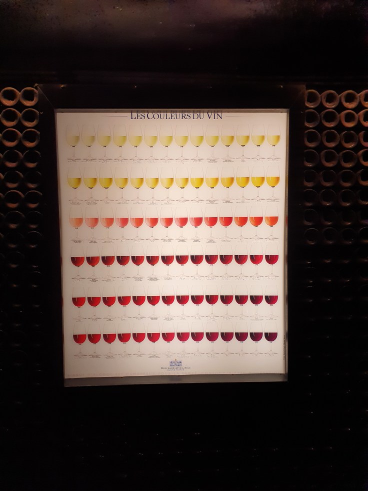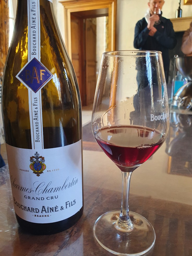 Weinverkostungen sind überall im Burgund möglich, beim Weinproduzenten und bei Weinhändlern. Leider war unsere Zeit im Burgund zu kurz, um in diese Thematik tiefer einzusteigen und die verschiedenen Möglichkeiten auszuprobieren. Wer Zeit hat, kann sich hier nach Herzenslust austoben, entlang der Route des Grands Crus, insbesondere im Winzerdorf Nuits-Saint-Georges, reiht sich eine Örtlichkeit an die andere. Wir hatten bei unserer Stadtführung ein Tasting beim Weinhändler Bouchard Ainé & Fils inklusive, der versucht, sein Tasting mit dem „Parcours der fünf Sinne“ aufzupeppen, also Wein sehen (u.a. die verschiedenen Farben – nettes Plakat), hören (etwas weit hergeholt werden verschiedene Klänge gespielt), riechen (fiel bei uns wegen Corona flach), fühlen (die Textur – samtig etc. anhand von Stoffproben) und natürlich Geschmack. Wir testen fünf Weine, darunter ein 1er und ein Grand Cru. Interessanterweise schmeckt uns allen der „einfache“ Rotwein (Fixin La Mazière) am besten und überraschenderweise empfiehlt uns auch der Sommelier beim Abendessen im Schlosshotel einen Wein aus Fixin (Albert Bichot). Offensichtlich trifft dieses Örtchen etwas nördlich unserer Unterkunft unseren Geschmack und wir müssen beim nächsten Mal hier testen und einkaufen gehen.