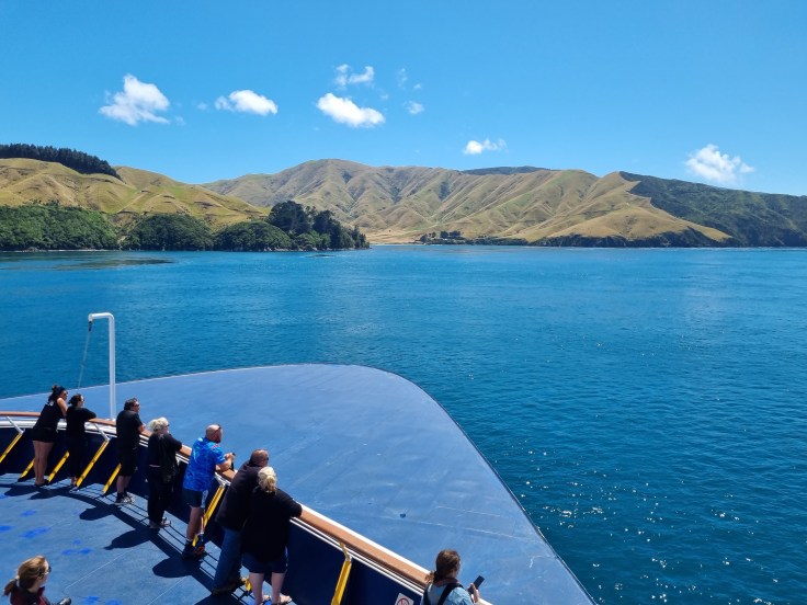 Einige Tage später nehmen auch wir den Interislander von Picton nach Wellington und fahren den Queen Charlotte Sound entlang bis zur Cook Strait. Auch an diesem Tag haben wir Glück und genießen die rund 40 Kilometer lange Fahrt durch den Sound bis zur Mündung in die Tasmansee bei besten Wetter. Danach geht es auf’s offene Meer der Cook Strait. Nicht selten herrschen hier raue Bedingungen, die Cookstraße gehört aufgrund oftmals starker Winde und der „Kanalwirkung“ zwischen Süd- und Nordinsel zu den stürmischsten Meeresstraßen der Welt. Selbst auf unserer großen Fähren ist der rauere Seegang deutlich zu spüren, als der Interislander den schützenden Sound verlässt und auf das offene Meer fährt. Trotzdem ist diese Überfahrt für uns fast wie ein Bootsausflug, denn bei den Ausblicken zunächst auf den Sound, dann auf den Kanal und hinüber zur Nordinsel bis zur Einfahrt in den Wellingtoner Naturhafen wird einem garantiert nicht langweilig.