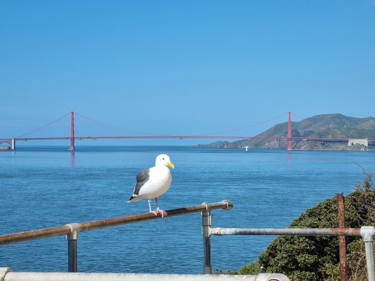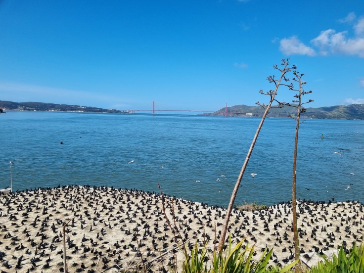 Anschließend laufen wir noch ein bisschen über die Insel. Als Teil der Golden Gate Recreation Area untersteht sie dem Nationalparkservice und ist unter anderem ein Vogelparadies. Ehrenamtliche Naturkundler klären uns auf über die hübschen Seidenreiher, Kormorane und die vor der Insel schwimmenden Delfine, die auch wir zu Gesicht bekommen. Und als Krönung gibt es bei diesem Rundgang grandiose Ausblicke auf Downtown und die Golden Gate Bridge. Ein Ausflug nach Alcatraz ist ein Muss, erst recht bei unserem Traumwetter! Ein Tipp dazu: Schaut euch als Vorbereitung den Film „The Rock“ mit Sean Connery und Nicolas Cage an, der ist nicht nur gut, sondern zeigt auch viele Schauplätze, die ihr wiederfinden werdet.