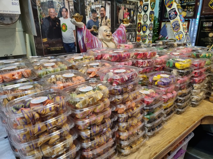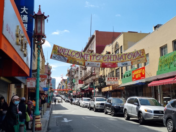 Das Festland wieder unter den Füßen, laufen wir los in Richtung Chinatown. Nicht nur, wenn man das Viertel durch das Dragon Gate betritt, sieht man sofort an den Geschäften, Restaurants, chinesischen Schriftzeichen (sogar der Straßennamen) und Fähnchen (oft auch taiwanesische) wo man sich befindet, im ältesten und einem der größten und schönsten chinesischen Stadtviertel der USA. Hier solltet ihr unbedingt essen gehen – die Restaurantvielfalt ist großartig und das Essen günstig. Ein weiterer Tipp: Besucht die Fortune Cookie Factory in der Ross Alley (Eintritt frei). Jeder Gast darf hier probieren, dem Herstellungsprozess der Glückskekse zuschauen, Fragen stellen und kann natürlich auch die Kekse (gibt es unter anderem auch mit Erdbeer- oder Matcha-Geschmack und entsprechend rot und grün gefärbt) kaufen.