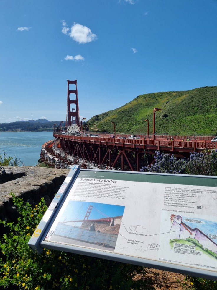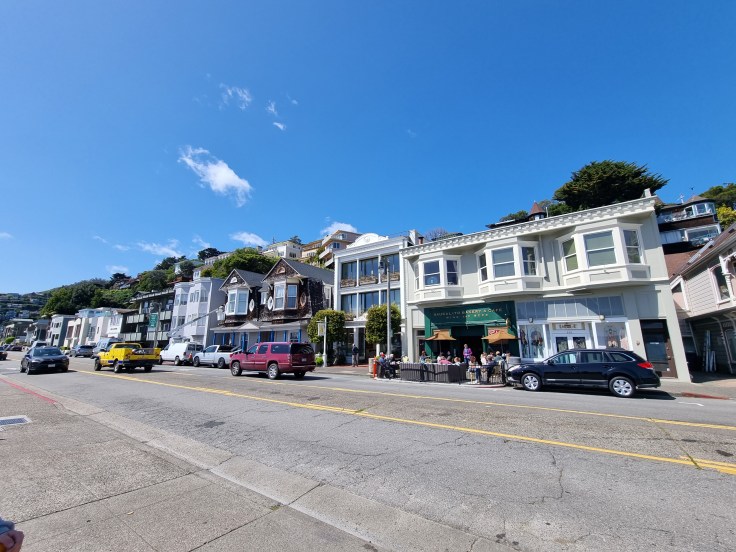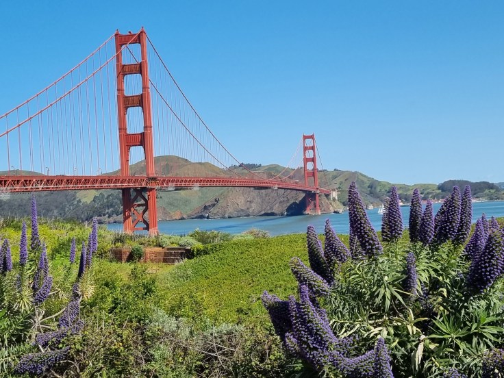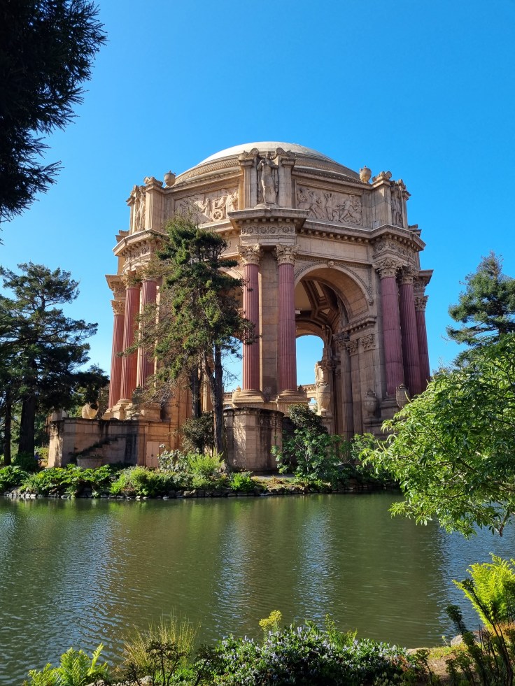 An unserem letzten Urlaubstag wollen wir noch einmal sportlich aktiv werden. Wir mieten Fahrräder (zahlreiche Verleiher rund um Fisherman’s Wharf) mit dem Ziel, über die Golden Gate Bridge nach Sausalito zu radeln. Diese nur knapp 15 Kilometer lange Strecke ist ganz gut mit Fahrradwegen bestückt und man würde für die reine Fahrtzeit rund 45 Minuten brauchen. Zahlreiche Stopps sorgen dafür, dass es – nicht nur bei uns – deutlich länger dauert. Wir halten am Strand, um die Temperatur des Pazifiks zu testen (frisch). Wir machen einen Abstecher zum Palace of Fine Arts, dessen Gebäude an griechische oder italienische Tempel erinnern. Kommt euch auch bekannt vor? Hier nahm Nicolas Cage Sean Connery in ‚The Rock‘ fest. Und natürlich machen wir zahlreiche Stopps, um die Golden Gate Bridge aus verschiedenen Perspektiven zu fotografieren. Sie ist aber auch zu schön anzuschauen, diese rote majestätische Hängebrücke über dem blauen Pazifik und zwischen den Bergen, die sich dank des intensiven Regens dieses Frühjahr grün und blühend präsentieren.