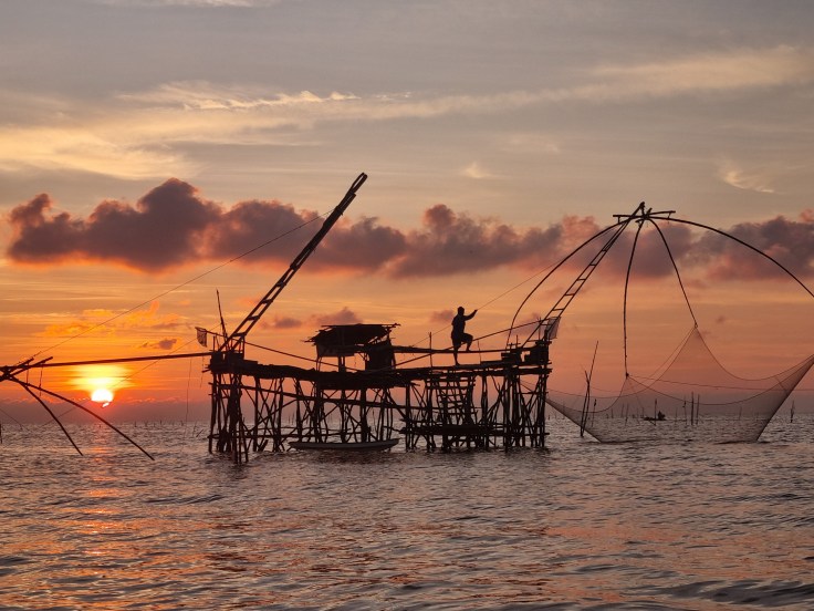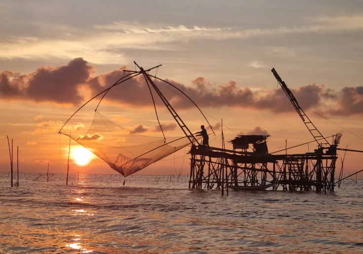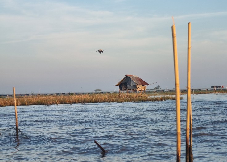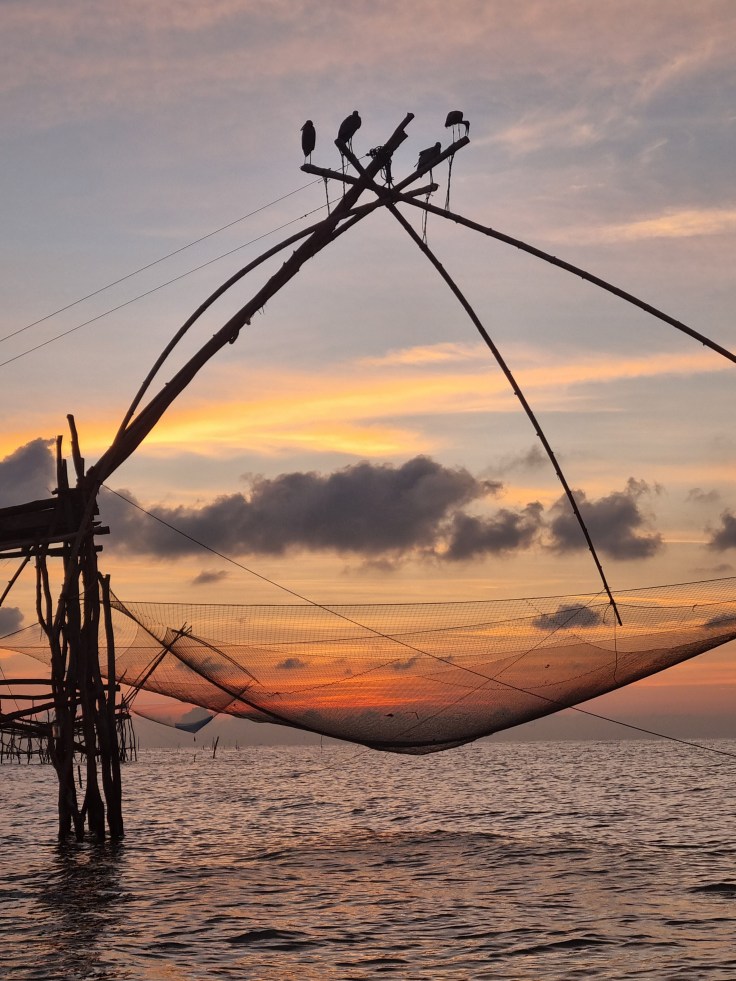Danach wirft der Bootsführer den kleinen Motor an und wir fahren weiter. Immer wieder stoppen wir und schauen uns ein Stelzenhaus, einen Fischer bei der Arbeit oder die zahlreichen Wasservögel an. Wir sehen Reiher, Storche, Kormorane, Ibisse, einen Eisvogel – ich bedauere es sehr, kein Fernglas und kein Teleobjektiv dabei zu haben. Mit seinen fast 500 Quadratkilometern, in dem über 200 Vogelarten temporär oder ganzjährig leben, ist der See das größte Vogelschutzgebiet Thailands und ein Paradies für Vogelliebhaber und Naturfotografen.