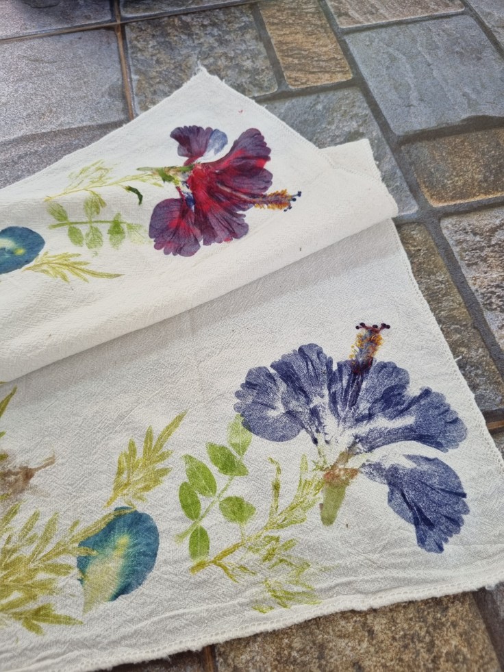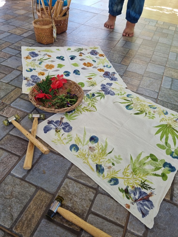 Wir überqueren die Provinzgrenze nach Phatthalung und freuen uns darauf, beim nächsten Stopp mal selbst Hand anzulegen: beim Eco Painting. Bei einer reizenden Familie sammeln wir rund um deren Haus verschiedene Blüten und Blätter. Diese „hämmern“ wir mit einem Gummihammer anschließend so dekorativ wie möglich auf ein Stück Stoff. Als die Frauen merken, dass wir Spaß haben, bringen sie uns kichernd Cannabis-Blätter, die wir zuvor nicht im Garten entdeckt hatten – da macht es doch gleich noch mehr Freude. Mit Blick auf unsere Teenager, vielleicht künftige Backpacker, beeilen sie sich, uns zu versichern, dass auch in Thailand Cannabis-Genuss mittlerweile legal ist…