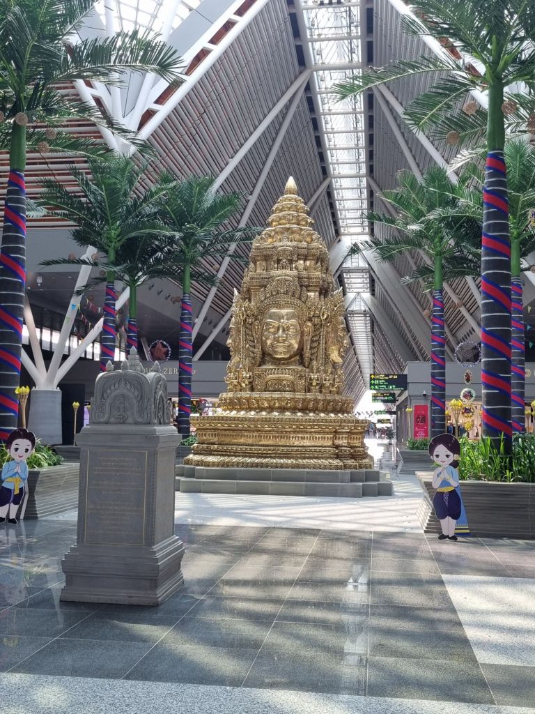 Unser erster Eindruck von Kambodscha ist sehr ambivalent: Wir landen auf dem brandneuen, hochmodernen, internationalen Flughafen von Siem Reap (Code: SAI, fertiggestellt im Oktober 2023). Er wurde nötig, da der alte Flughafen zu nah an den Tempelanlagen liegt, die unter den Erschütterungen und Abgasen litten. Der Neubau rund 45 Kilometer westlich der Stadt mitten im Nirgendwo, finanziert von einem chinesischen Investor, ist zwar einerseits beeindruckend, wirkt allerdings andererseits völlig überdimensioniert – hier scheint eine gewisse Erwartungshaltung zu bestehen.