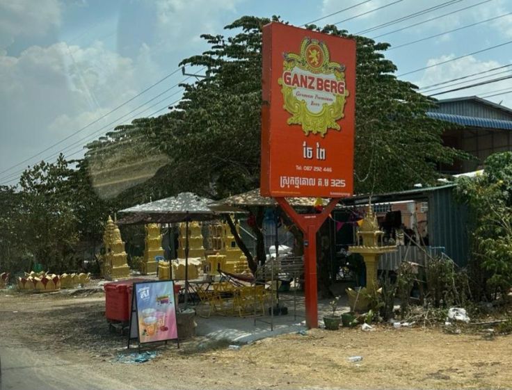Der moderne Flughafen macht’s möglich: Unser Gepäck liegt schon auf dem Band, als wir unsere Einreiseformalitäten erledigt haben. Ein freundlicher, gut englischsprechender Fahrer (wie wir später erfahren, lernt er sogar Deutsch) holt uns ab und fährt uns in knapp einer Stunde zu unserem Hotel. Unser erstes Gespräch mit unserem Fahrer dreht sich um Bier, wir fragen, was seine Lieblingssorte sei? Angkor, sagt er, das finden wir die nächsten Tage auch in jedem Restaurant. Er beeilt sich, hinterherzuschieben, dass er auch Ganzberg gut findet, das sei ja deutsches Bier. Äh, wir getrauen uns kaum zu sagen, dass wir davon noch nie gehört haben. Tatsächlich begegnet uns die Ganzberg-Werbung überall am Straßenrand, dieses „German Premium Beer“ wird angeblich von einem bayerischen Braumeister in Kambodscha gebraut. Durchgesetzt hat es sich wohl noch nicht, denn in den Restaurants finden wir meist nur eine dieser Marken: Angkor, Cambodia, Krud sowie das oft etwas günstigere Anchor. Eisgekühlt sind alle trinkbar und erfrischend.