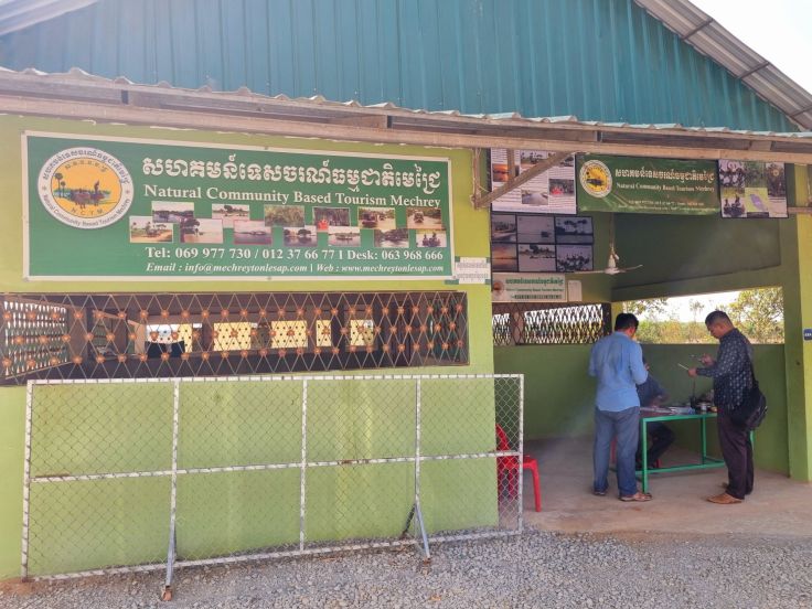 Natürlicherweise erstreckt sich der Tonle Sap in der Trockenzeit auf etwa 2.500 bis 3.000 Quadratkilometern, in der Regenzeit ist seine Fläche mehr als viermal so groß und kann sogar bis zu 15.000 Quadratkilometer erreichen. Eigentlich liegt der See nur wenige Kilometer südlich von Siem Reap. Aber da wir in der Trockenzeit hier sind, müssen wir eine ziemlich lange Holperstrecke zurücklegen, bis wir an den schiffbaren Bereich gelangen. Unser Ziel ist das von Touristen eher seltener besuchte Floating Village Mechrey, ein schwimmendes Dorf im Tonle Sap. Mechrey ist ein Projekt des ganzen Dorfes und bezeichnet sich als Natural Community Based Tourism – eine gute Initiative.