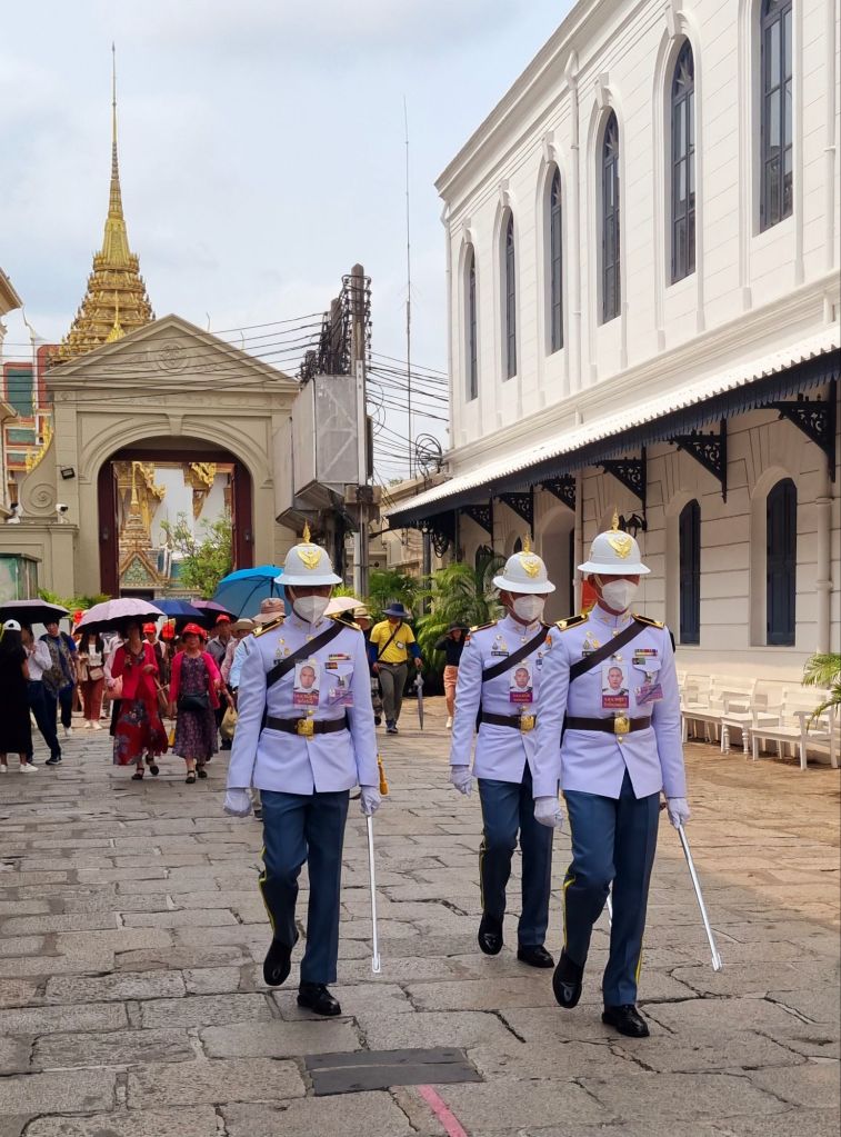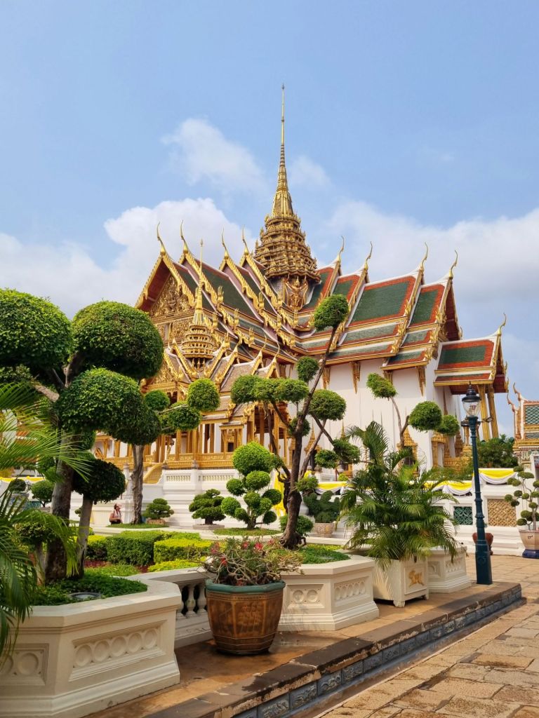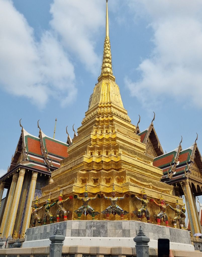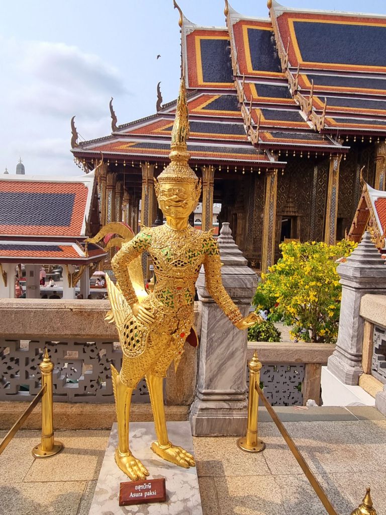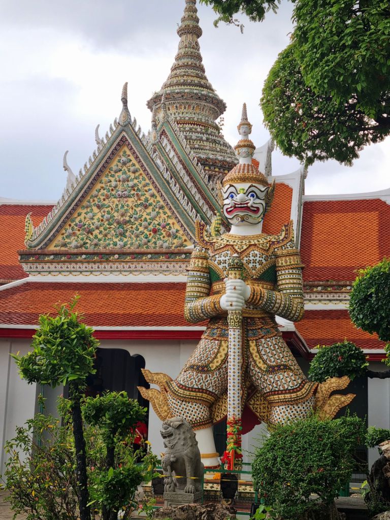 Der Große Palast ist zweifelsohne eine der Hauptattraktionen der Stadt, die sich kein Besucher entgehen lassen sollte, auch wenn das Ticket stolze 500 Baht kostet (Stand April 2024; Online oder vor Ort erhältlich) – es lohnt sich! Ende des 18. Jahrhunderts wurde der Palast von König Rama I errichtet, knapp 200 Jahre später verlegte König Rama IX seinen Hof und ließ anschließend den Großen Palast für Besucher öffnen. Das Gelände ist riesig (über 2 Quadratkilometer) und in verschiedene Höfe aufgegliedert, in denen sich unter anderem der königliche Tempel, der königliche Wohnkomplex, Thronhallen und Verwaltungsgebäude befinden. Es würde diesen Blog sprengen, über die einzelnen Höfe, Gebäude oder Monumente zu berichten, ganze Bücher wurden hierüber geschrieben. Lasst euch von den Gebäuden, Stupas, Wächterfiguren und Dämonen in all ihren Farben, Formen und der ganzen Pracht verzaubern!