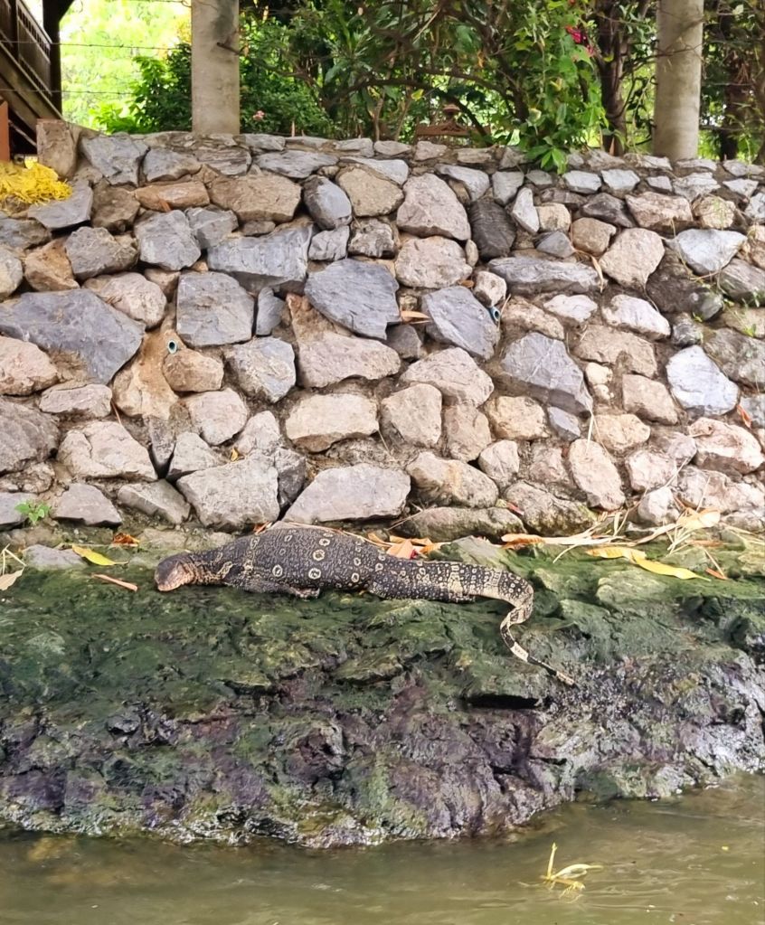 Bangkok wird auch „Venedig des Ostens“ genannt und zu einem Besuch hier gehört eine Fahrt über die vielen Kanäle der Stadt, die Klongs. Auch wir lassen uns dieses Vergnügen nicht entgehen und starten am breiten Chao Praya Fluss mit Blick auf die moderne Skyline. Schnell biegen wir ab auf einen der vielen Klongs, in das Wohngebiet der Einheimischen mit ihren Stelzenhäusern, viele davon liebevoll mit Pflanzen geschmückt. Immer wieder kreuzt ein schwimmender Waran unseren Weg, manch einer liegt auch vollgefressen in der Sonne.