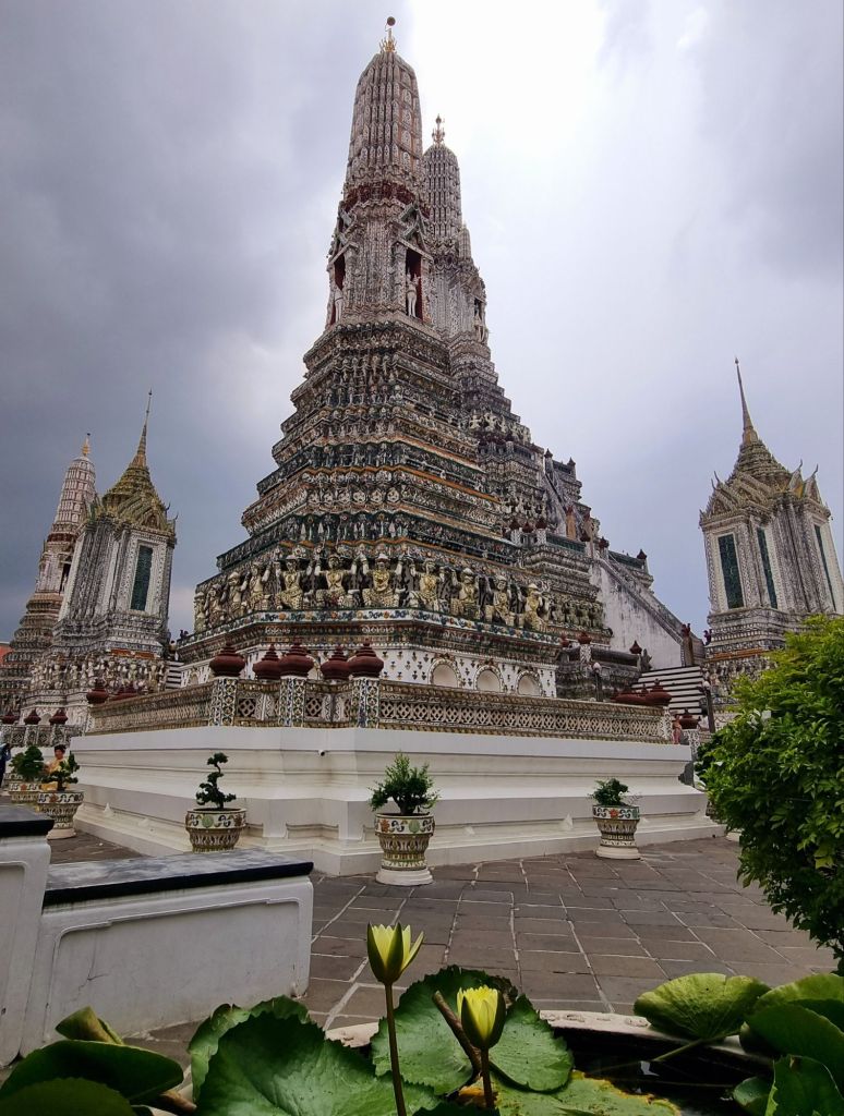 Ebenfalls einer der meistbesuchten Orte in Bangkok und ein weiterer königlicher Tempel Erster Klasse ist Wat Arun, der Tempel der Morgenröte, auf der anderen (westlichen) Seite des Chao Praya Flusses. Bezüglich des Namens etwas irritierend, bietet sich der schönste Anblick auf den Tempel bei Sonnenuntergang vom gegenüberliegenden Flussufer, wo sich zahlreiche Restaurants und Bars befinden, die sich diesen Blick entsprechend bezahlen lassen.