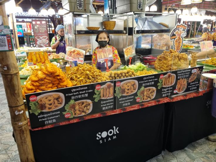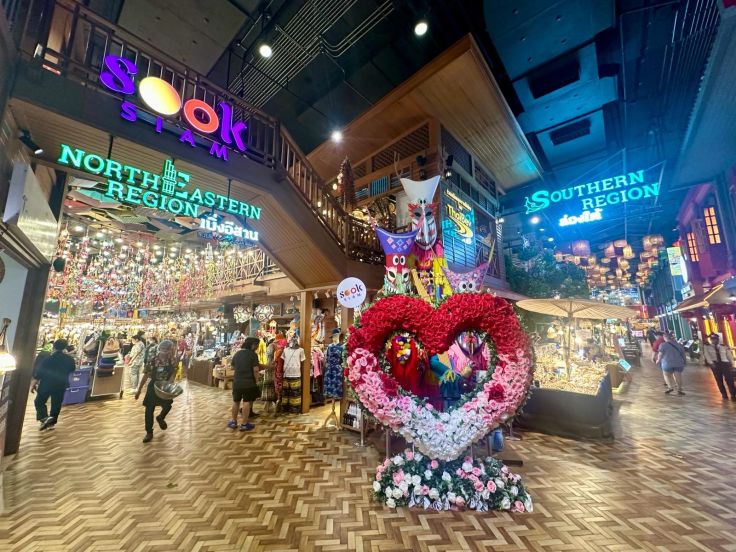 Auch das ist mit zwei Teenagern und einem Mann, der sich stets die neuesten Immobilienprojekte anschaut, fast schon Pflichtprogramm: ein Besuch des IconSiam, dem modernsten und luxuriösesten Shoppingcenter Thailands. Eröffnet im Jahr 2018, beheimatet der Komplex auf acht Stockwerken und über 500.000 Quadratmetern Verkaufsfläche neben einem Kino und dem japanischen Kaufhaus Takashimaya mehr als 500 Geschäfte – von teuren Luxusmarken (sogar Autos!) über thailändische Designer und internationale Brands bis hin zu Souvenirständen – sowie etwa 100 Restaurants und Imbisse. Von diesem befindet sich ein Teil im Untergeschoss in einem Foodcourt, der seinesgleichen sucht und kaum einen Wunsch offen lässt. Sogar einen Mini Indoor Floating Market gibt es und neben diversen Köstlichkeiten präsentieren sich in verschiedenen Ecken thailändische Provinzen mit ihrem Baustil und ihrem ortstypischen Waren. Anlässlich des buddhistischen Neujahrsfests Songkran findet hier sogar eine „Wasserschlacht“ statt – ganz Bangkok feiert mit „Wasser-Pump-Guns“ in diesen Tagen. Wir haben uns auf jeden Fall gerne ein paar Stunden im IconSiam aufgehalten!