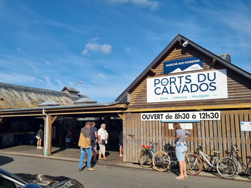 Das Nachbarstädtchen Dives-sur-Mer ist nur durch ein Flüsschen, die Dives, von Cabourg getrennt. Im Städtchen selbst geht es deutlich ruhiger zu, es wird höchstens etwas voller, wenn der Markt in der historischen Markthalle stattfindet. Etwas vom Zentrum entfernt am Hafen, dort wo die Dives schon fast ins Meer mündet, befindet sich die „Halles aux Poissons“. In dieser Fischhalle kann täglich frischer Fisch erworben werden, was nicht wenige Einheimische und der Materie kundige Touristen tun.