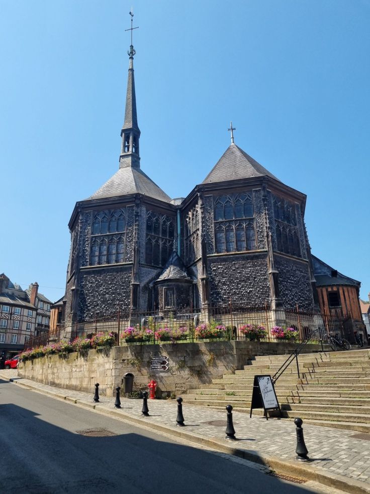 Als weitere Besonderheit Honfleurs findet ihr hier die größte Holzkirche Frankreichs: die Église Sainte-Catherine. Je nachdem, von welcher Seite ihr euch der Kirche nähert, werdet ihr diese vielleicht (so wie wir) erst einmal für eine Markthalle halten, gerade auch weil der Glockenturm frei steht. Sie wurde im 15. Jahrhundert erbaut und man sieht ihr nicht zuletzt wegen des kielförmigen Gewölbes an, dass hier Schiffsbauer ihre Expertise eingebracht haben. Auch wenn ihr euch die charmanten Gassen mit vielen anderen teilen müsst, solltet ihr Honfleur auf jeden Fall besuchen.