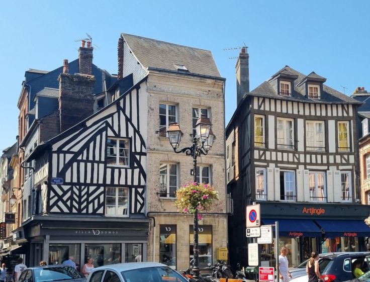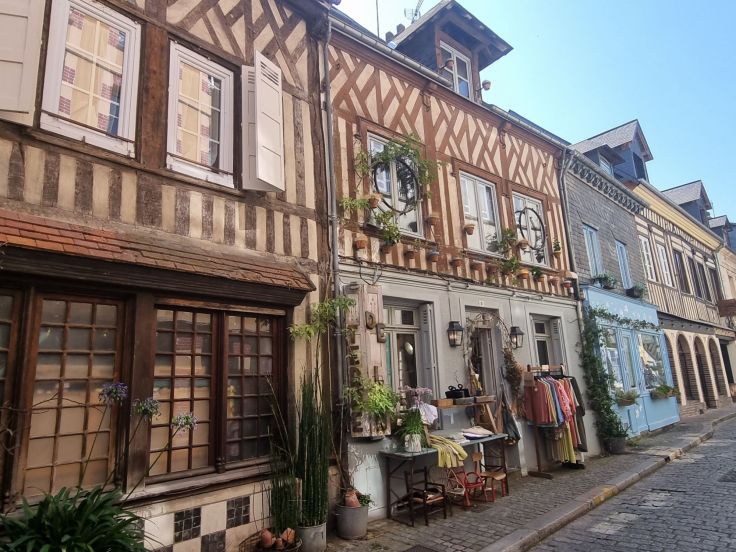 Die erste „Städte-Diva“ ist Honfleur. Diese Hafenstadt ist tatsächlich ein normannisches Juwel, allerdings wie in Étretat zum Preis von täglichen Touristenmassen. Honfleur war einst bedeutender Handels- und Hafenplatz der normannischen Herzöge. Im 19. Jahrhundert mauserte sich das Städtchen zum Künstlerzentrum. Eugène Boudin ist hier geboren und hier malten und trafen sich auch Monet, Renoir, Pissarro und Cézanne. Heute erfreuen sich die Besucher über den malerischen Hafen und die engen Gassen mit vielen Shops, Restaurants und Cafés in hübschen Häusern, darunter zahlreiche mit Fachwerk gebaut.
