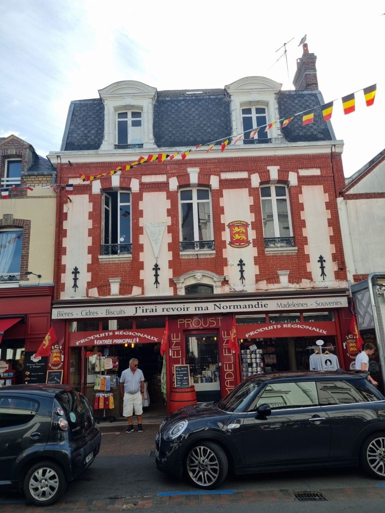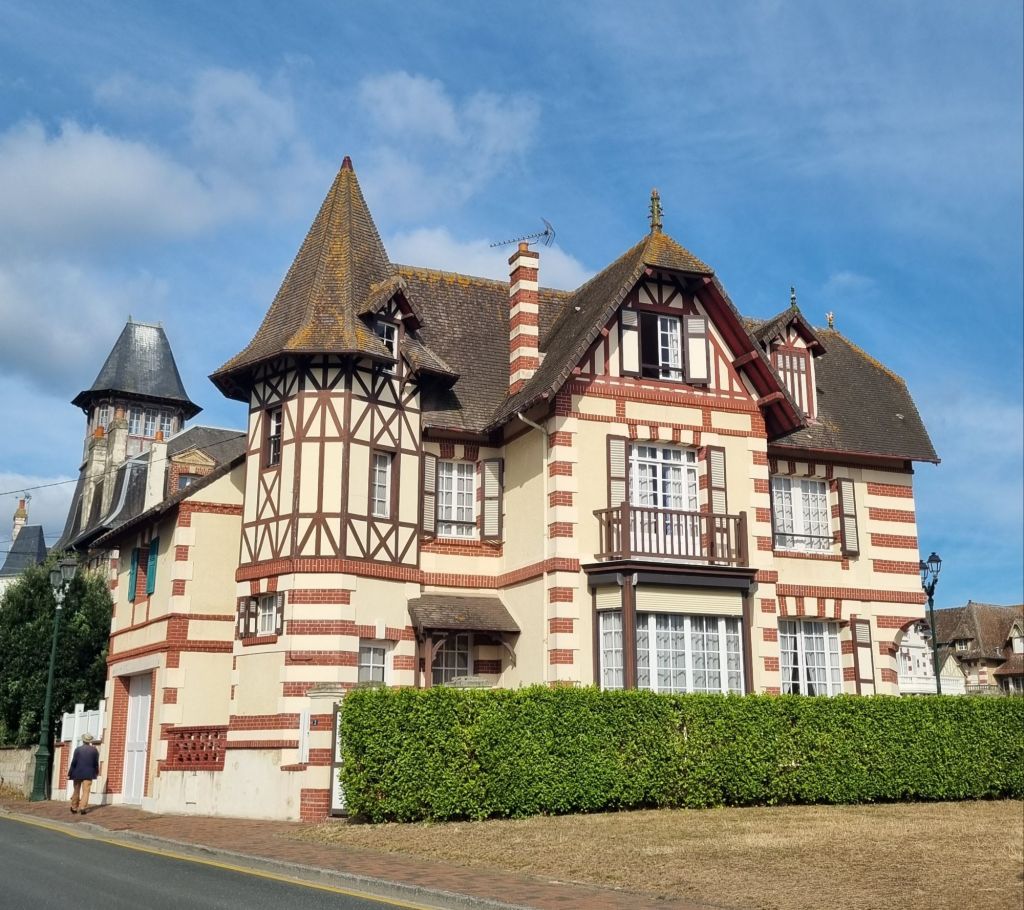 Es folgen einige weitere Badeorte an der Küste, bevor wir bei der Drei-Städte-Agglomeration Houlgate, Dives-sur-Mer, Cabourg ankommen. Cabourg ist ebenfalls ein mondänes Seebad samt feinsandigem Strand, Bädervillen und Casino. Auf dem Reißbrett geplant, führen alle Straßen fächerförmig auf das Grand Hotel und das Casino am Strand zu. Wir parken an der „Mairie“ (Rathaus) auf dem großen Parkplatz und laufen dann die Avenue de la Mer bis an dasselbe. Publikum, Shops und Restaurants sind weniger „High Society“ als in Deauville, aber für Unterhaltung ist hier garantiert gesorgt. Genauso schön wie in Deauville sind die zahlreichen Bädervillen und es macht Spaß, durch die Gassen zu schlendern und diese zu fotografieren!