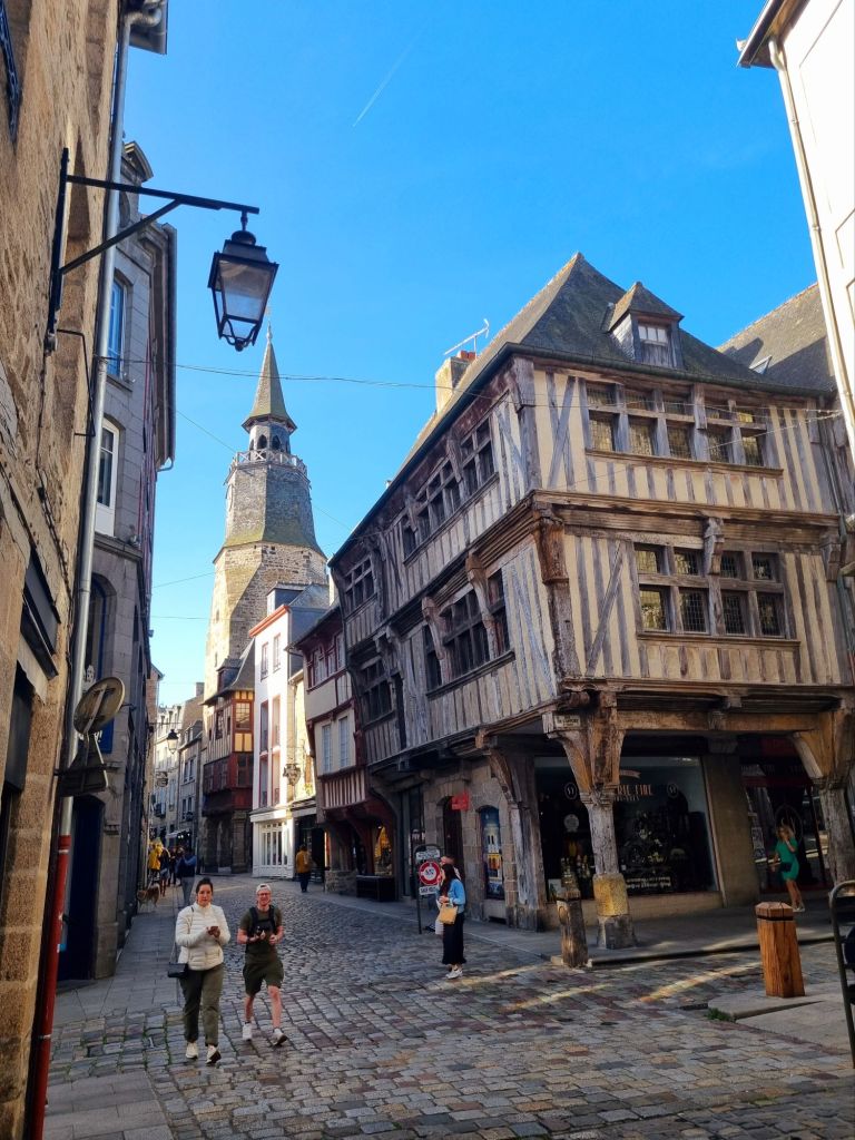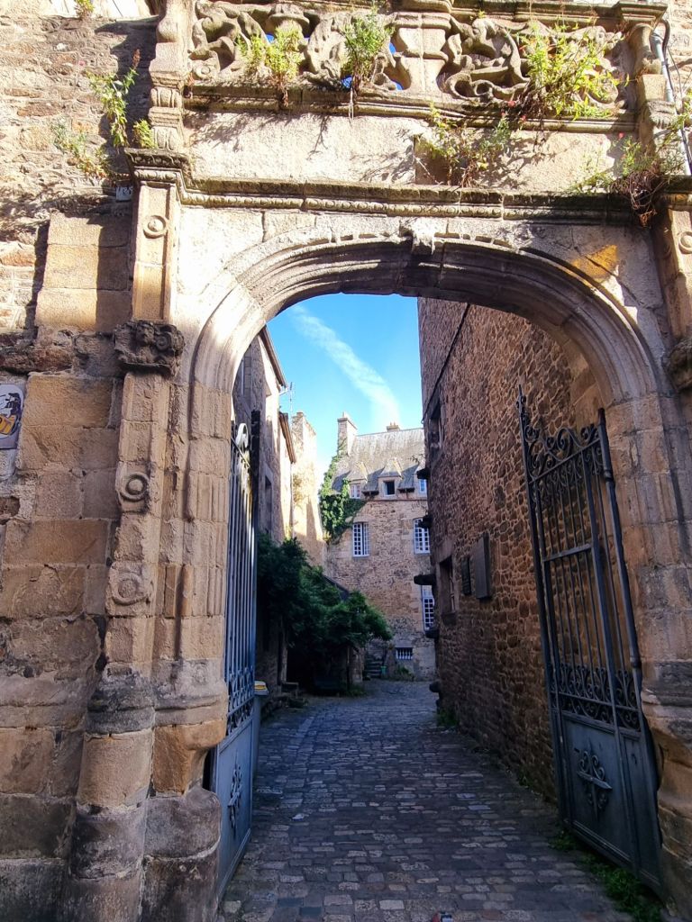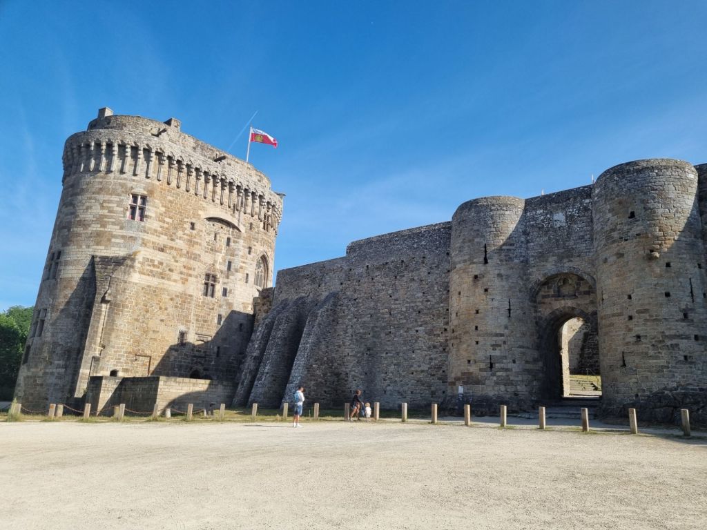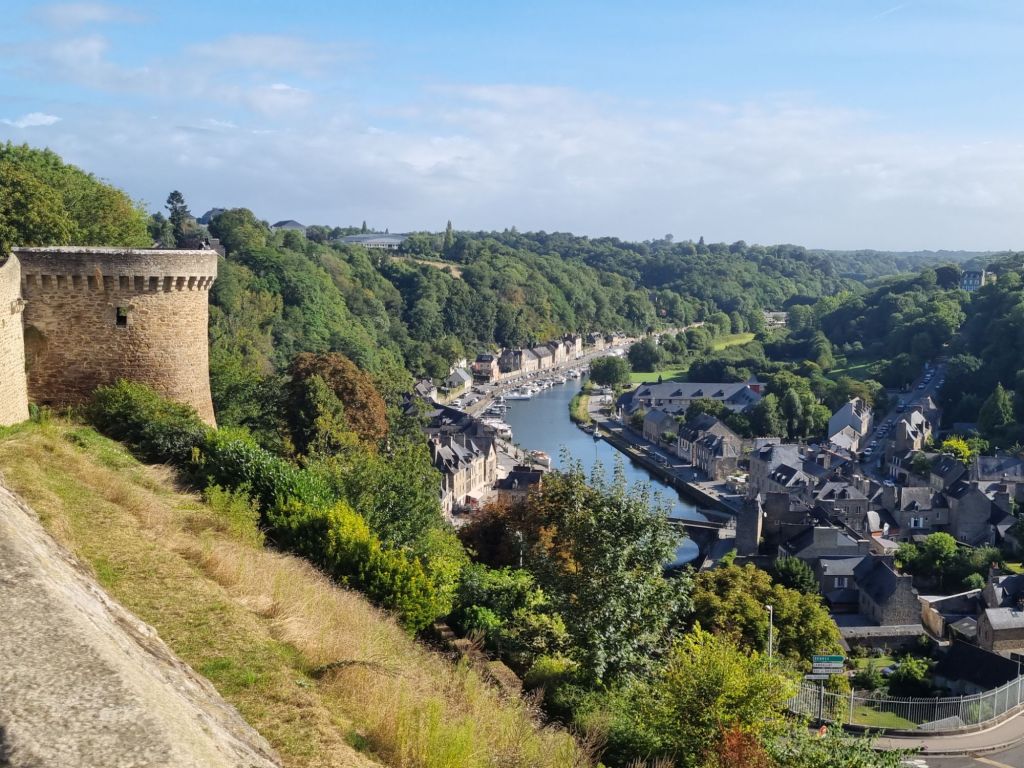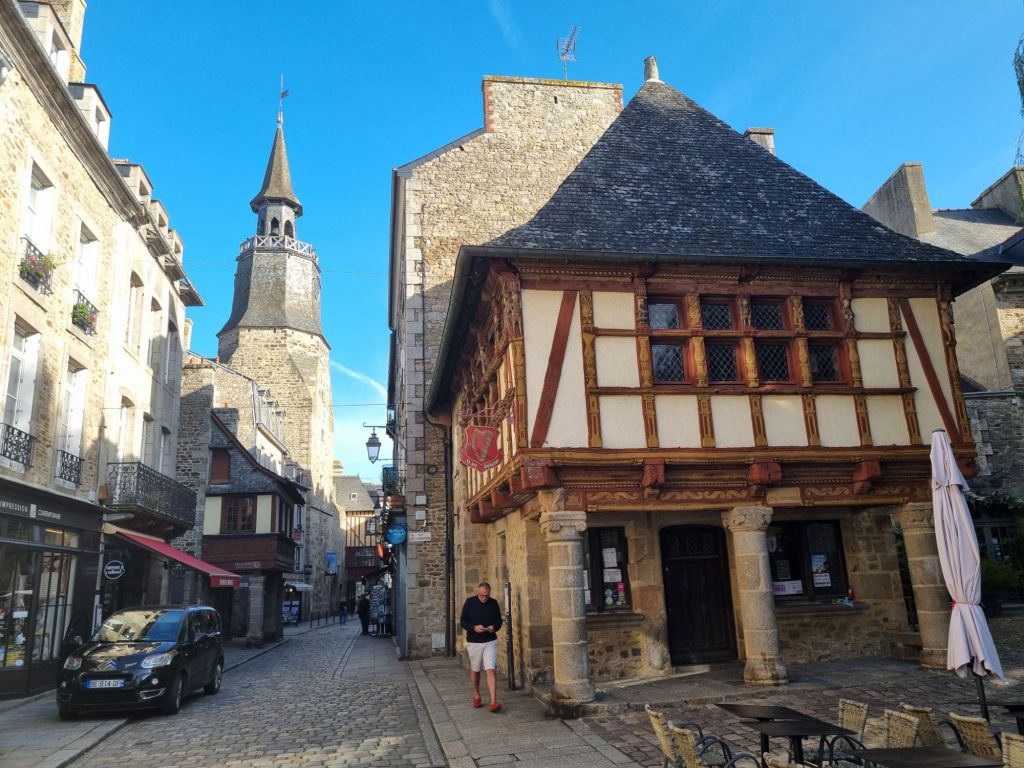 Wir übernachten im Hinterland der bretonischen Smaragdküste (siehe Bretonische Smaragdküste: von Austern, Korsaren und Seebädern) in der Nähe von Dinan. Dieses mittelalterliche Städtchen ist wahrlich eine Perle und wird von vielen als die schönste Stadt der Bretagne bezeichnet! Die Oberstadt ist umgeben von einer etwa drei Kilometer langen Stadtmauer (die längste der Bretagne) samt imposantem Schloss (mit Museum). Von der Stadtmauer aus blicken wir auf die 75 Meter tiefer liegende Unterstadt am Fluss Rance (der später zwischen den beiden Städten Dinard und St. Malo in den Atlantik mündet). Wer den Ab- und Aufstieg nicht scheut, nimmt die steile, aber sehr malerische Rue du Jerzual hinunter zum alten Hafen. Die Kontrolle dieses Handelswegs machte die Stadt im Mittelalter reich, später sorgten Tuchweber und Gerber für Wohlstand. Glücklicherweise sind zahlreiche Fachwerkhäuser aus dem 15., 16. und 17. Jahrhundert noch erhalten beziehungsweise nach Kriegszerstörungen originalgetreu wieder aufgebaut. Wir schlendern durch die kopfsteingepflasterten Gässchen und saugen die mittelalterliche Atmosphäre in uns auf. Dabei kommen wir auch an einem der Wahrzeichen der Stadt vorbei, dem Belfried mit Uhr (Horloge), der Uhrturm kann auch bestiegen werden.