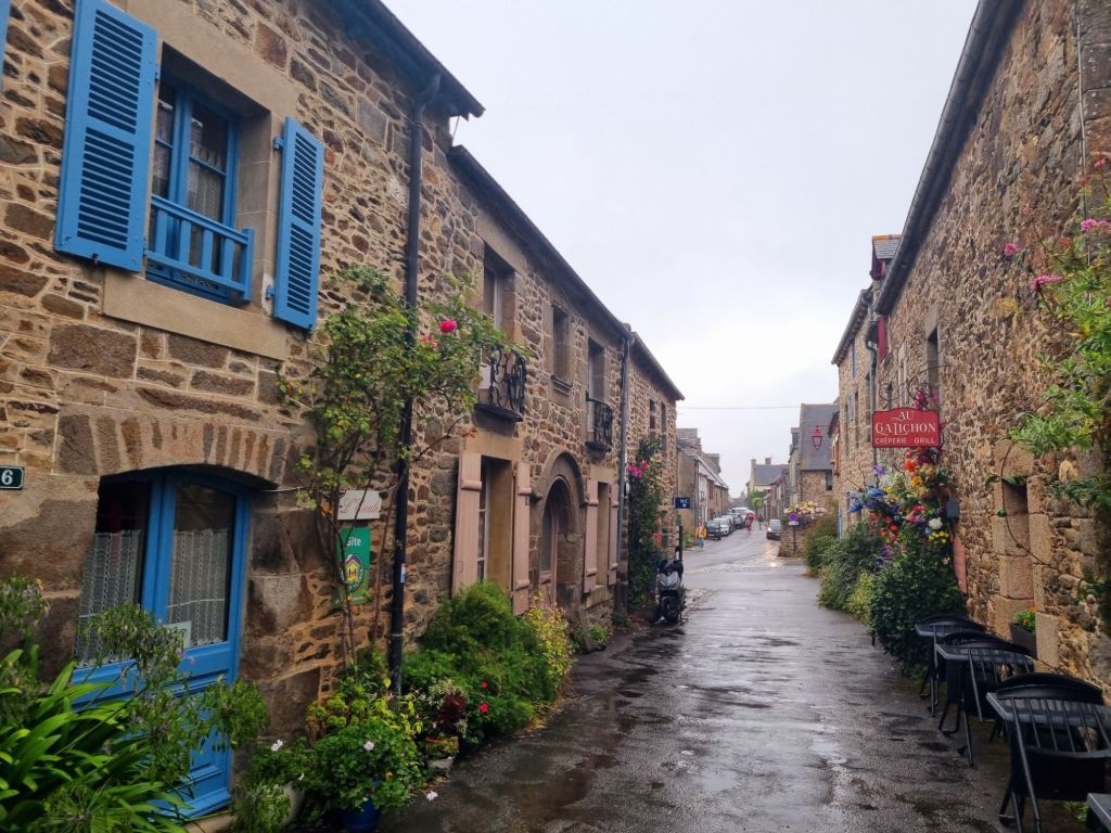 Ein zweiter charaktervoller Ort im Umland, etwas weiter flussabwärts an der Rance gelegen, ist Saint-Suliac. Ebenfalls von Mönchen gegründet, zählt das Städtchen zu den „Plus beaux villages de France“ – zu den schönsten Frankreichs. Auch Regen hält uns nicht von einem Spaziergang durch die mit Granithäusern gesäumten Gassen ab!