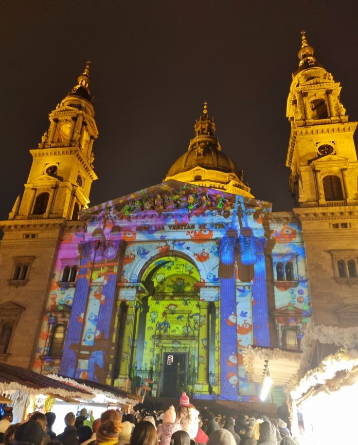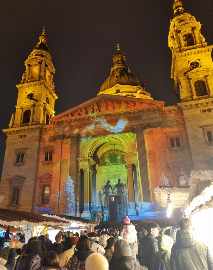 Und zum Schluss noch ein paar Weihnachtsmarkt-Tipps. Es gibt zahlreiche Weihnachtsmärkte in der Stadt, der schönste war für uns der vor der St.-Stephans-Basilika. Hier kommt nicht nur das Genießer-Herz auf seine Kosten, sondern auch das Auge. Auf der Vorderfront der beleuchteten Basilika wird regelmäßig eine Lichtershow mit Musik dargeboten, sehr stimmungsvoll. Der zweitgrößte und -bekannteste Weihnachtsmarkt steht auf dem Vörösmarty-Platz. Am Rathausplatz (Városháza Park, bei der zentralen Haltestelle Deák Ferenc tér), unweit der weihnachtlich beleuchteten Fashion Street, könnt ihr sogar Schlittschuh laufen, ganz in der Nähe auch Riesenrad fahren. Auf der gegenüberliegenden Donauseite, in Buda, findet ihr einen Weihnachtsmarkt bei der Fischerbastei. Allen Weihnachtsmärkten ist gemeinsam, dass sich hier vor allem Fleisch- und Krautliebhaber – es gibt unzählige, teils riesige Würste und Kraut in allen Variationen – sowie Süßschnäbel – neben dem bereits genannten z.B. den ungarisch-jüdischen Schichtkuchen Flodni – verlustieren können.