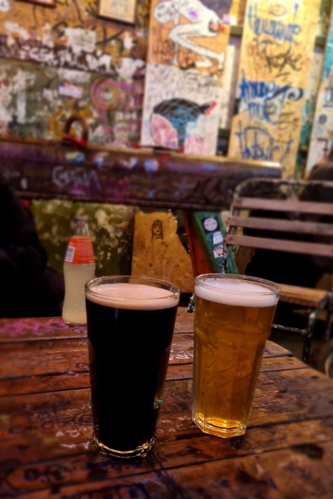 Davor zum Aperitif oder danach bietet sich ein Gang durch das Viertel und ein Besuch einer der Ruinen-Bars an. Ruinen-Bars entstanden Anfang der 2000er Jahre in halb verfallenen Gebäuden und haben sich mittlerweile zu Institutionen entwickelt, allen voran die erste und größte Ruinen-Bar Szimpla Kert. Konzerte, Ausstellungen, ein Sonntagsmarkt und Plattenbörsen finden beispeilsweise hier statt, aber hauptsächlich kann man in zig verschiedenen, teils winzigen, teils großen, Räumen, jeder individuell eingerichtet, dekoriert und bemalt, Musik hören und etwas trinken. Auf zwei Stockwerken verteilt findet ihr neun Bars, die angeblich 400 verschiedene Getränke, darunter unzählige Biersorten, anbieten.