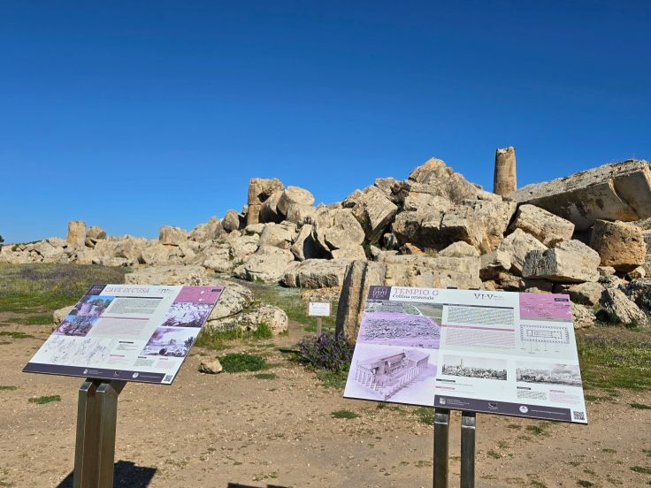 Weitere Tempel der Anlage wurden teilrestauriert, ein großer Teil der Anlage ist allerdings nicht restauriert. Beispielhaft dafür sei das riesige Trümmerfeld des größten Tempels G (direkt neben E) genannt, hier lassen sich besonders gut die tonnenschweren Säulentrommeln erkennen, die im antiken Steinbruch Rocche di Cusa gewonnen wurden. Dieser nicht weit von Selinunt liegende Steinbruch kann ebenfalls besucht werden.