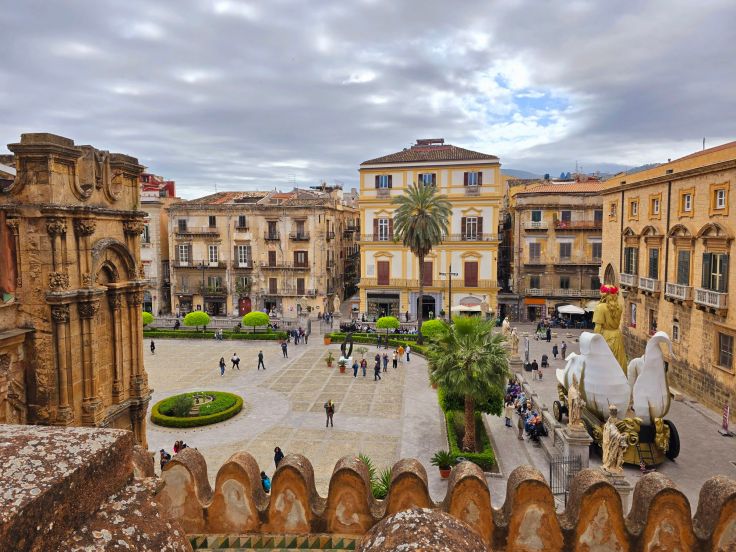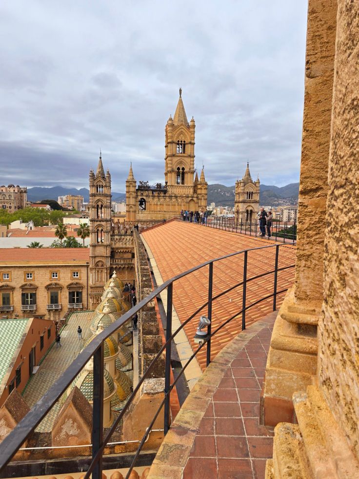 Nicht entgehen lassen solltet ihr euch einen Rundgang auf dem Dach der Kathedrale. Von hier aus könnt ihr über die hübschen Kuppeln vor allem auf den Platz vor dem Dom mit der Statue der Hl. Rosalie, aber auch über die Dächer der Altstadt bis zum Meer schauen!