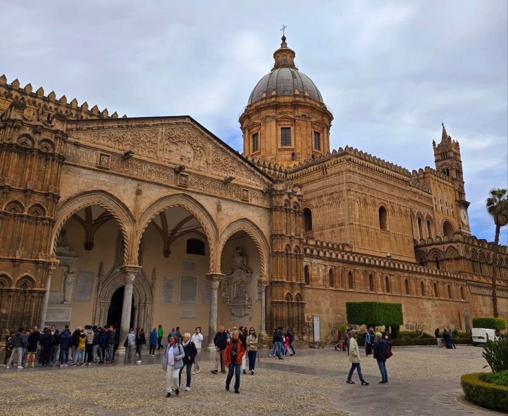 Genau wie im Palazzo dei Normanni zeigt sich auch in der Kathedrale oder dem Dom von Palermo (Maria Sanitissima Assunta) die wechselseitige Geschichte Siziliens. Erst stand hier eine Kathedrale, die dann in eine Moschee und später wieder in eine Kathedrale umgewandelt wurde. Dieses Gebäude steht jedoch aufgrund eines Erdbebens nicht mehr, der heutige Bau wurde im 12. Jahrhundert im normannisch-arabischen Stil errichtet und mehrfach erweitert, weshalb er Elemente der Gotik, der Renaissance und des Barock aufweist.