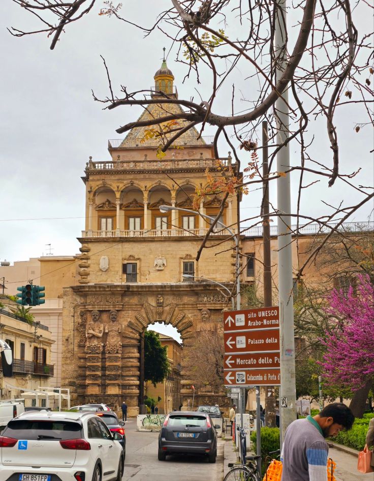 Durch die Porta Nuova, das wichtigste Stadttor Palermos aus dem 16. Jahrhundert, gelangen wir in die Altstadt. Das Stadttor wurde zu Ehren des Sieges von König Karl V in Tunesien errichtet, was die vier maurischen Figuren neben dem Tor verdeutlichen. Gleich hinter dem Tor stehen wir vor dem Palazzo dei Normanni oder Palazzo Reale, der zum UNESCO Weltkulturerbe zählt. Nachdem die Normannen Sizilien erobert hatten, errichtete König Roger II im 12. Jahrhundert diesen Palast, der fortan als Regierungssitz der normannischen Könige auf Sizilien diente. Nach diversen Um- und Anbauten sowie Nutzungsänderungen tagt seit dem Ende des 2. Weltkriegs das sizilianische Parlament hier. Die Sitzungsräume und die daneben liegenden königlichen Gemächer sind nur an bestimmten (sitzungsfreien) Tagen zu besichtigen, normalerweise Freitag bis Montag, dann ist das Ticket auch teurer (Infos dazu findet ihr hier). Auf jeden Fall empfiehlt es sich, vorab zeitgebundene Tickets im Internet zu kaufen, denn sonst müsst ihr zweimal anstehen, am Ticketschalter und beim Einlass.