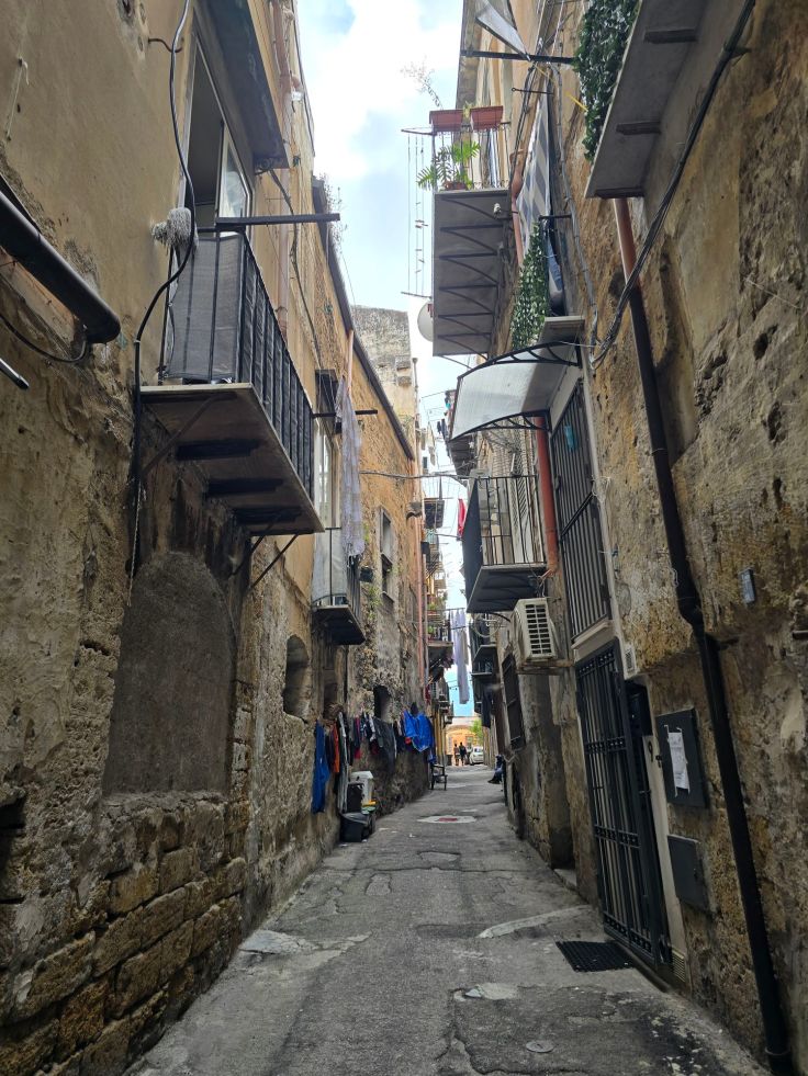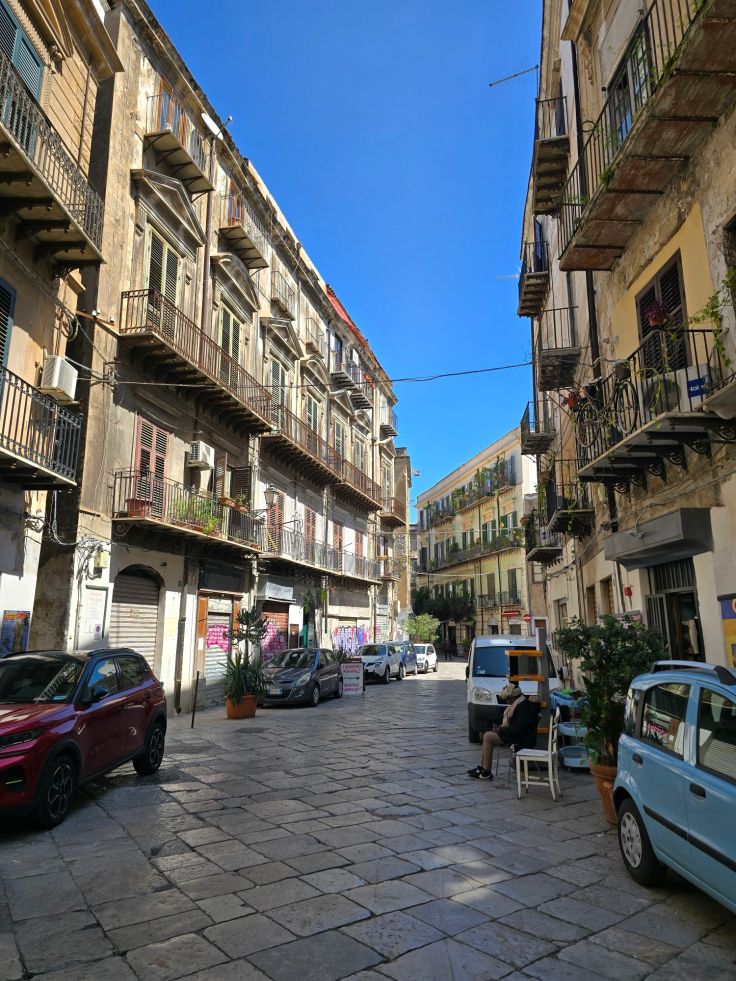 Bisher haben wir uns entlang der touristischen Highlights und herausgeputzter Fassaden der Altstadt beweget. Doch nur wenige Schritte weiter liegt eine andere Welt. Hier kann sich oft nur noch eine Vespa eine Ape oder ein Fiat 500 durch die engen Gassen zwängen. Der Putz bröckelt von den Wänden, es hängt der „Elektrosalat“ genau wie die Wäsche aus und vor den Fenstern. Die „Nonni“ sitzen vor der Haustür und quatschen, in vielen Ecken liegt Müll. Leider habe ich eher die pittoresken und nicht die „ganz schlimmen“ Ecken eingefangen, das bereue ich im Nachhinein. Nicht, dass ich Palermo schlecht machen wollen würde, im Gegenteil. Nach den ganzen Muster-Touri-Orten fand ich diese Straßenzüge einfach nur authentisch und mit einer ganz anderen Art von (Alltags-)Leben erfüllt. Will sagen: Bewegt euch auf jeden Fall in Palermo auch außerhalb der Hot Spots!