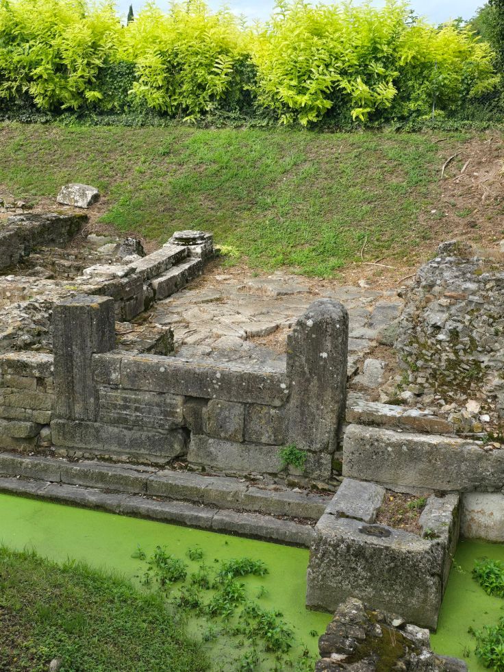 Der Via Gemina Richtung Osten folgend kommen wir zu einer weiteren Top-Attraktion: dem antiken Hafen, einem der besterhaltenen römischen Binnenhäfen. Die Pieranlagen mit Laderampen und dem Grundriss von Lagerräumen sind heute noch gut zu erkennen. Entlang der Via Antica folgen wir dem Hafenverlauf in Richtung Süden, ein schöner Spaziergang durch die Zypressen-Allee (alles bisher ohne Ticket und kostenlos zu besichtigen, manches ist nur zu bestimmten Zeiten geöffnet).