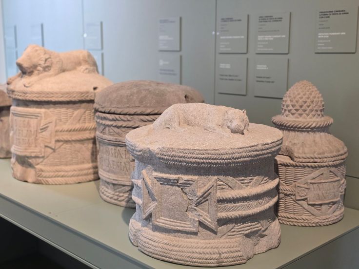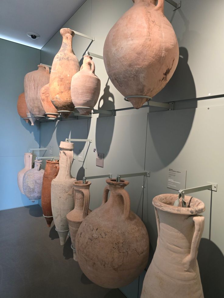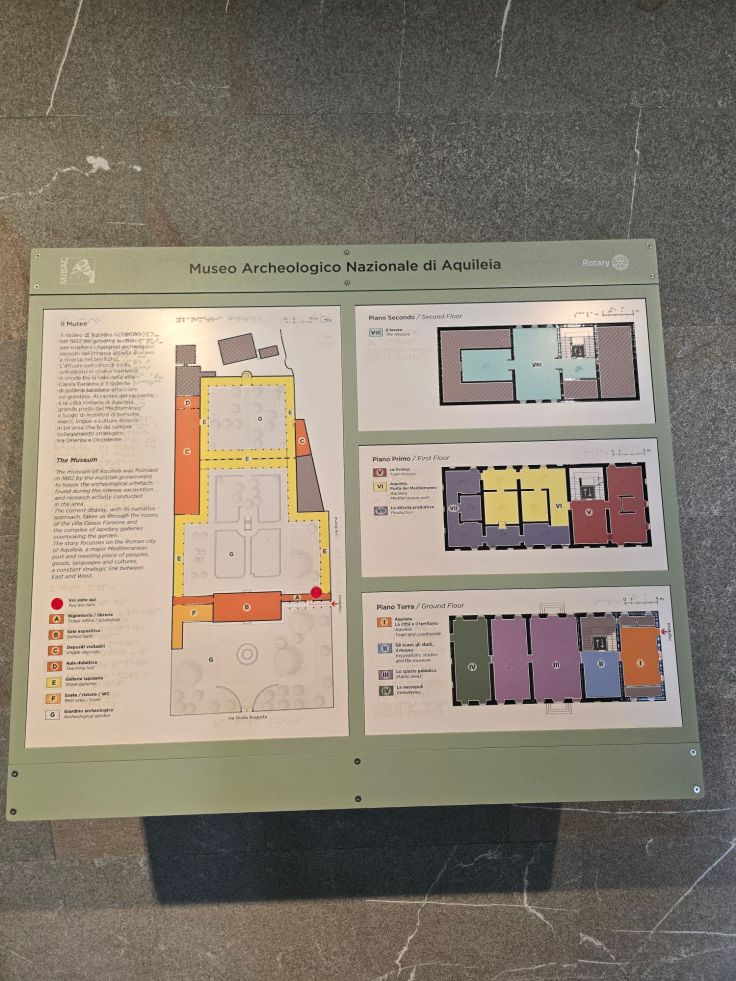 Nach diesem überwältigenden Erlebnis in der Basilika haben wir noch das Archäologische Nationalmuseum besucht (Eintritt wird erhoben), eine der bedeutendsten Sammlungen Norditaliens. In einer Villa wird auf drei Stockwerken, im Garten und in einem angeschlossenen Gebäude die römische Geschichte Aquileias beleuchtet, von ihrer Bedeutung als Handelsplatz über Kunst bis hin zum Alltagsleben. Amphoren für verschiedene Lebensmittel, Urnen, Schmuck, Münzen, Portraits und Skulpturen – das alles gibt einen guten Einblick in das Leben der Bevölkerung zwischen dem 2. Jahrhundert vor und dem 5. Jahrhundert nach Christus und zeigt, welche Bedeutung die Stadt als Treffpunkt für Menschen, Waren, Religionen und Kulturen hatte. Wer hier tiefer eintauchen möchte, kann sich problemlos stundenlang aufhalten. Das zweite große Museum Aquileias, das frühchristliche Museum, haben wir dann nicht mehr geschafft, ebenso wie viele weitere Attraktionen.
