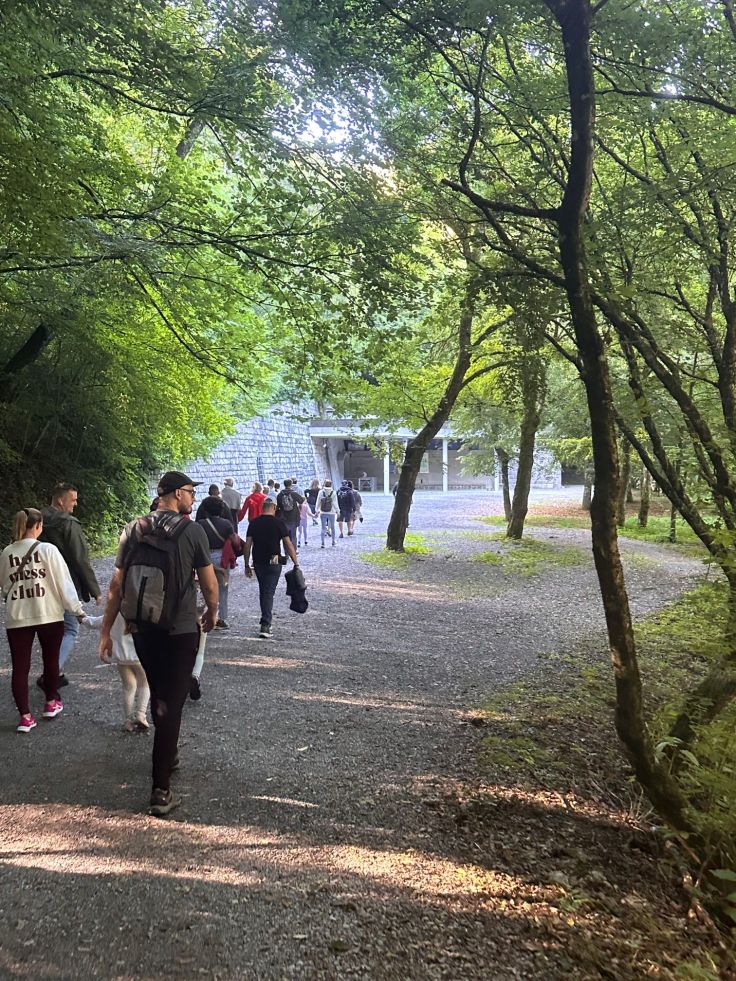 Egal, für welche Höhle ihr euch entscheidet, der wichtigste Tipp zur Hochsaison lautet: Vorab Tickets kaufen! Als wir an der Skocjan-Höhle ankommen (Parkplatz kostenfrei) – wohlgemerkt zur allerersten Tour des Tages -, empfängt uns schon ein Schild mit der Aufschrift „alles ausverkauft“, und das gilt auch für die kommenden Tage. Erschrocken stellen wir fest, dass die Gruppe der Wartenden trotzdem immer und immer größer wird. Schließlich setzen sich 150 Leute in Richtung Höhle in Bewegung – das schockiert uns doch etwas. Wir alle laufen entlang der Straße und durch den Wald zum Eingang der Höhle. Dort – puh! werden wir in vier Gruppen unterteilt.