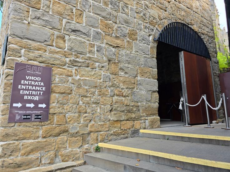 Gleich mehrere Freunde haben uns vor dem Verkehrschaos in Piran gewarnt, also beschließen wir, keine Experimente zu machen und im großen Parkhaus Fornace am Stadteingang zu parken. Von hier aus fährt auch ein Shuttlebus in die Altstadt, wir laufen aber lieber an der Uferpromenade entlang dorthin. Auf unserem Spazierweg dorthin passieren wir dann auch eine der Schranken, die die auf einer Landzunge liegende Altstadt mit ihren engen Gässchen vor dem Autoansturm schützt.