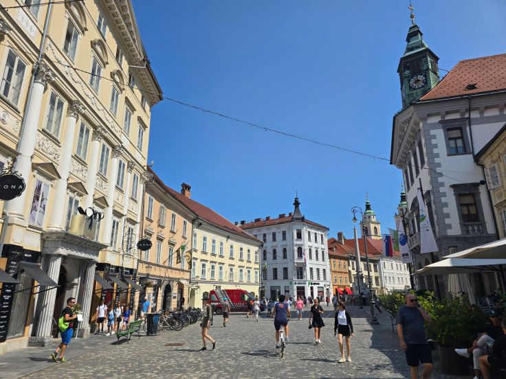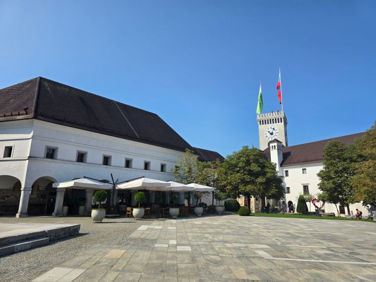 Wir parken unter dem Kongressplatz (praktischer Hinweis: unter dem Kongressplatz befinden sich hervorragende kostenlose öffentliche WCs) und sind damit gleich mitten im „kulturellen und historischen Geschehen“. Denn dieser Platz spielte gleich mehrfach eine zentrale geschichtliche Rolle. 1918 wurde hier bei einer Massendemonstration die Unabhängigkeit von Österreich-Ungarn und die Gründung des slowenischen, kroatischen und serbischen Staates ausgerufen. Auch 1988 demonstrierte hier das Volk und forderte die Freilassung von vier slowenischen Journalisten. Damit begann der slowenische Frühlings, der 1991 zur Unabhängigkeitserklärung Sloweniens führte.