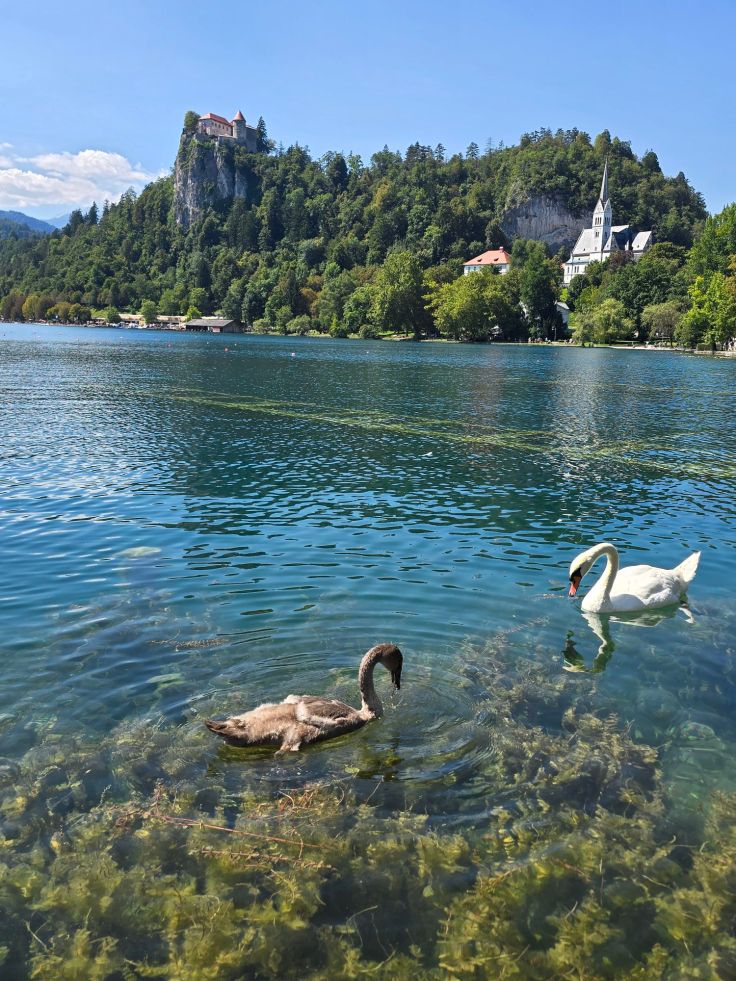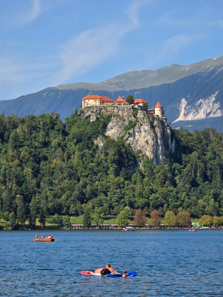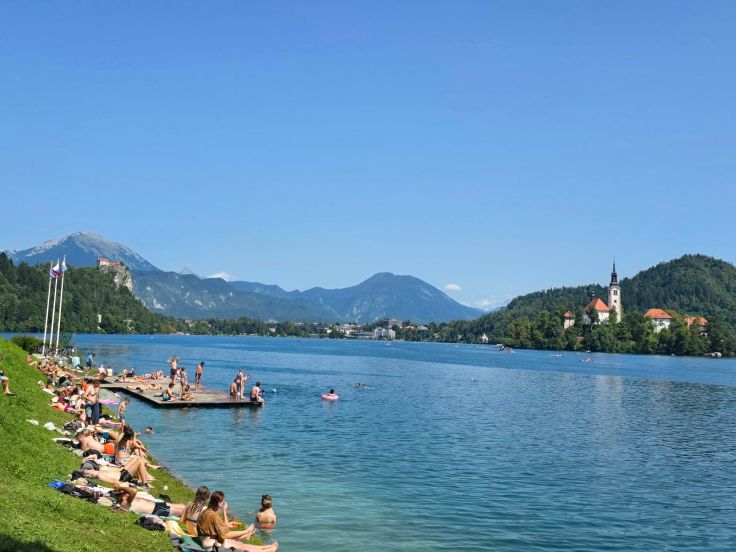 Dazu bietet sich ein Spaziergang einmal rund um den See an. Der gut gepflegte, geteerte Weg (sogar mit Trinkwasserspendern!) ist etwa sechs Kilometer lang und bietet immer wieder tolle Ausblicke in und auf den kristallklaren See und die Landschaft. Hat man den Ort erst einmal hinter sich gelassen, wird es auch weniger trubelig. Wer nicht laufen will, kann ein Fahrrad mieten, ein Bähnchen oder eine der Pferdekutschen nutzen. An bestimmten Stellen legen die Pletnas ab, die traditionellen Boote schaukeln die Gäste unter anderem zur Wallfahrtskirche (ist auch schwimmend erreichbar). Die Bademöglichkeiten sind auf der westlichen Seeseite (also fernab vom Ort Bled) am besten, weil kostenfrei, die Strandbäder in Ortsnähe lassen sich ihre Dienste ebenfalls recht teuer bezahlen.