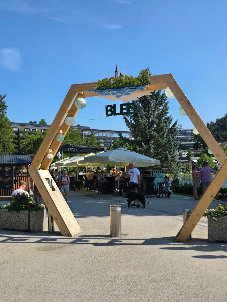 Wie beziehen Quartier im touristischen „Hotspot“ der Region, in Bled. Dieser Luftkurort (ca. 500m ü. M) liegt direkt am gleichnamigen See und seine Einwohnerzahl von gut 5.000 Menschen wird von der Zahl der Besucher insbesondere in der Hochsaison weit übertroffen. Kein Wunder, denn hier ist für fast jeden Urlaubsgeschmack etwas zu finden. Insbesondere wer Natur liebt, kommt im nahen Triglav Nationalpark – der Triglav ist mit 2.894 Metern der höchste Berg Sloweniens – auf seine Kosten, vor allem bei kurzen oder längeren Wanderungen, aber auch mit Outdoor-Sportarten wie Rafting, Kayak- und Kanutouren oder Canyoning, im Winter Skifahren. Badenixen und Wassermänner finden rund um den See mehrere, teils kostenpflichtige, Badestellen. Das quirlige Örtchen bietet nicht nur zahlreiche Cafés und Restaurants, sondern gerade in der Saison auch ein buntes Programm an Unterhaltung, beispielsweise Straßenmärkte und Konzerte. Kulturelle Highlights sind die Bleder Burg, die sich auf einem Felsen in 130 Metern Höhe über den See erhebt und die älteste Sloweniens ist, sowie die Wallfahrtskirche Maria Himmelfahrt auf einer Insel inmitten des Sees – übrigens die einzige natürliche Insel Sloweniens. Da ein Besuch dieser beiden Attraktionen vergleichsweise teuer ist, haben wir auf beides verzichtet und lieber die Landschaft genossen.