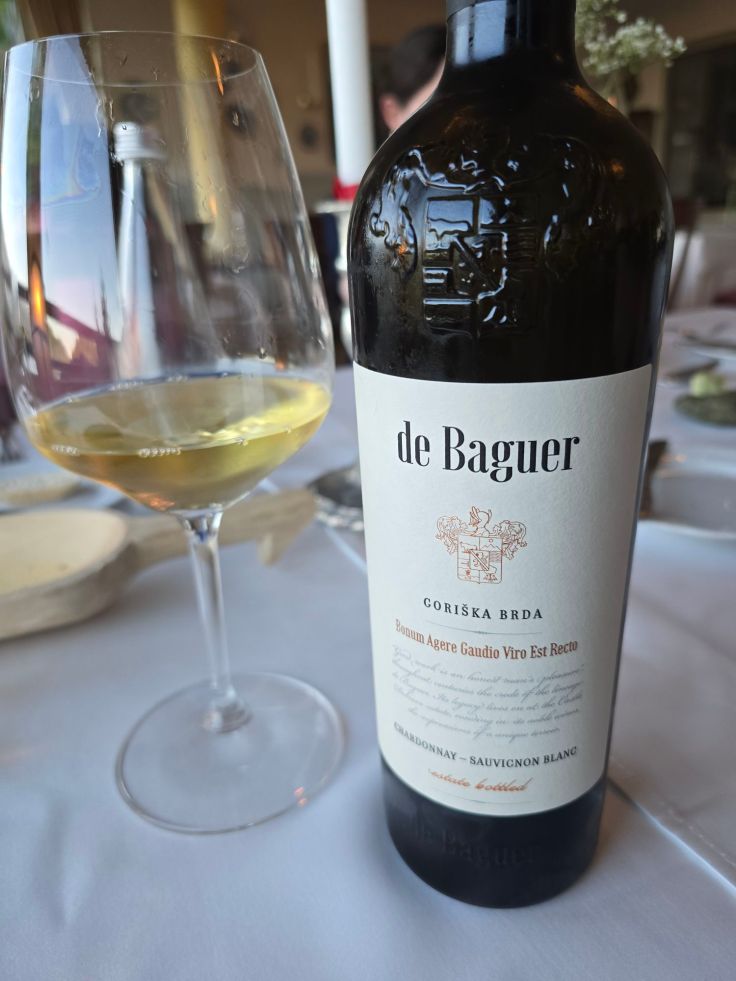 Zum Abschluss des Urlaubs gönnen wir uns dann noch etwas ganz Besonderes: ein Abendessen Restavracija 1906 im Hotel Triglav, hoch über dem See. Bei traumhaften Blick auf ebendiesen genießen wir ein hervorragendes Essen samt slowenischen Weinen, von denen mich insbesondere der De Baguer Chardonnay – Sauvignon Blanc der Winzergenossenschaft Klet Brda restlos begeistert.