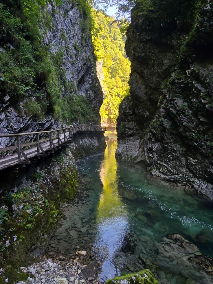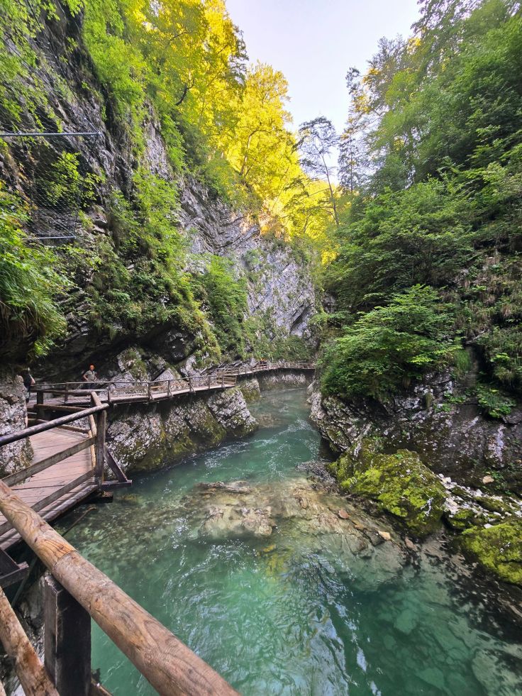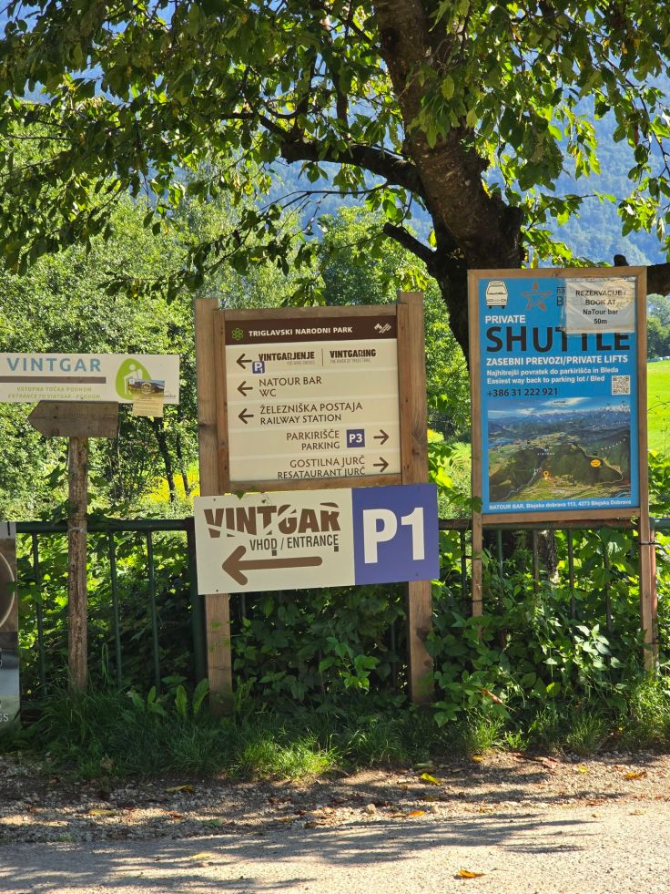 Am nächsten Tag starten wir der meistbesuchten Attraktion im Triglav Nationalpark einen Besuch ab: der Vintgar Klamm. Die 1,6 Kilometer lange, vom Flüsschen Radovna geformte Klamm liegt rund 4 Kilometer von Bled entfernt. Um den Besucherstrom zu kanalisieren, müssen zeitgebundene Tickets erworben werden. Ich empfehle wie immer: „Der frühe oder ganz späte Vogel…“ – ihr wisst schon. Im Ticket beinhaltet ist entweder ein Busshuttle direkt aus Bled (Abfahrt beim Bahnhof) oder die Parkgebühr am großen „P1 Vintgar Gorge Parkplatz“ vor den Toren von Bled und der Shuttle von dort zum Eingang der Schlucht. Auch dort gibt es einige wenige, teure Parkplätze. Das ist definitiv nur absoluten Frühaufstehern zu empfehlen, weil sofort voll, und rechnet zusätzlich mit genervten Busshuttle-Fahrern, die sich über diese „Wir-fahren-bis-vors-Loch-Besucher“ – nicht – freuen, um es mal vorsichtig auszudrücken.