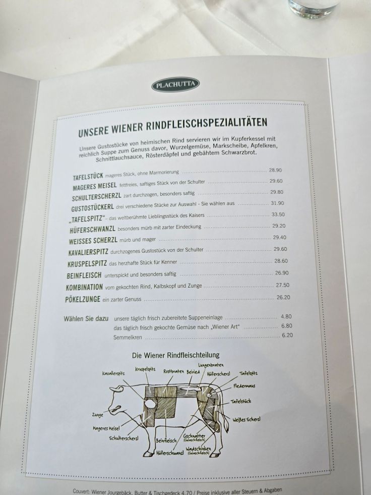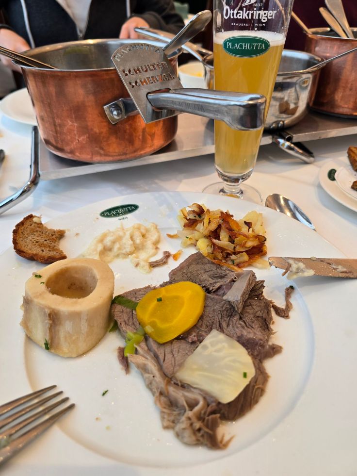 Beim Thema Kulinarik und Wien kommen den meisten sicherlich zwei Stichworte in den Sinn: Wiener Schnitzel und Sachertorte. Seit unserem letzten Wienbesuch heißt mein Highlight: Tafelspitz! Ich werde nie mehr ein Stück dieses gekochten Rindfleischs essen können, ohne an Wien zu denken. Vermutlich sollte ich es woanders gar nicht mehr essen, denn an den Tafelspitz im Plachutta wird keiner rankommen (dies ist keine bezahlte Werbung!). Den Tipp hatte mein Mann von einem Kollegen bekommen, der immer, wenn er in Wien ist, im Plachutta einen Tafelspitz isst. Praktischerweise befindet sich das Stammhaus von Plachutta in Hietzing, in unmittelbarer Nachbarschaft zum Schloss Schönbrunn, beides lässt sich prima kombinieren.