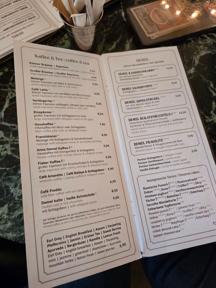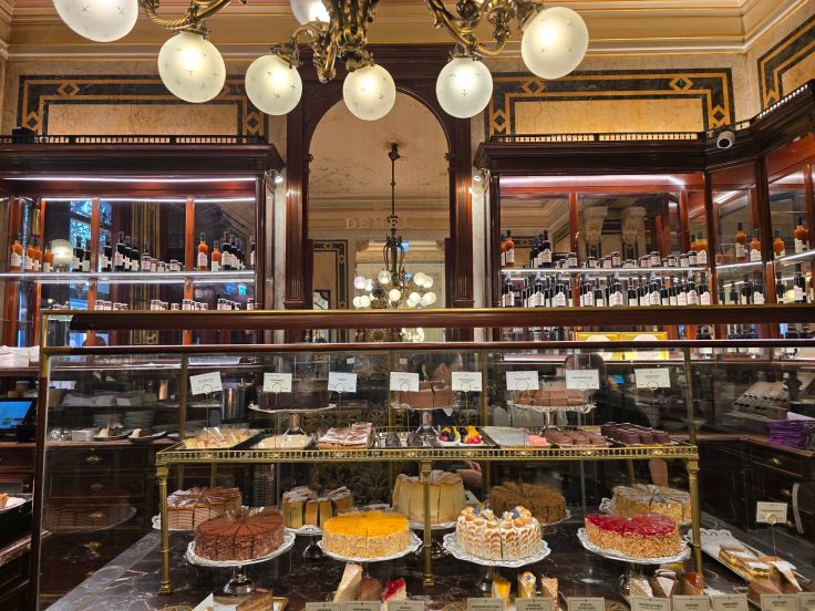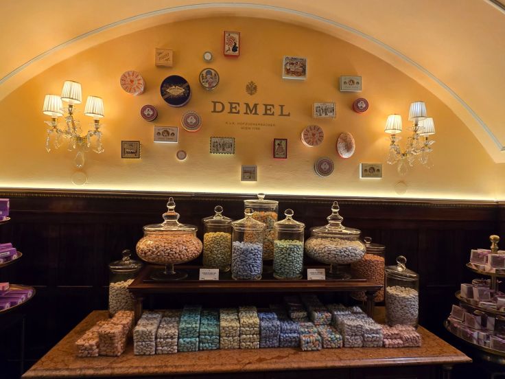 Die Wiener Kaffeehauskultur zählt seit 2011 zum immateriellen Kulturerbe der UNESCO, ausgezeichnet wegen der besonderen Atmosphäre, der historischen Möblierung und der gesellschaftlichen Rolle als „zweites Wohnzimmer“ der Wiener. Ein Besuch eines dieser Häuser gehört beim Wien-Besuch einfach dazu. „Platzhirsch“ ist das Café Sacher, Stammhaus der von Franz Sacher erfundene Sachertorte, eine Schokoladentorte mit Marillenmarmelade und Schokoglasur. Das zieht natürlich zahlreiche Touristen an, je nach Saison und Tageszeit bilden sich lange Schlangen. Wir haben uns für einen Besuch im Café Demel entschieden, unweit der Hofburg gelegen. Der Untertitel im Name „K. & K. Hofzuckerbäcker Wien 1786“ verdeutlicht erstens die Tradition und zweitens die Spezialisierung auf diverse süße Mehlspeisen. Auch hier bilden sich mitunter lange Schlangen für das (mehrstöckige) Café, wer nur das Geschäft besuchen will, kann diese umgehen. Allein schon ein Gang durch die verschiedenen Geschäftsräume lohnt sich, hier werden allerhand Zuckerbäckereien präsentiert. Achtung: insbesondere dem Kaiserschmarrn-Live-Cooking-Anblick und -Geruch kann kaum einer widerstehen und ihr werdet euch entweder einen „auf die Hand“ holen oder in die Schlange einreihen. Auch wir landen schließlich im Café und genießen eine Sachertorte, einen Kaiserschmarrn, einen Apfelstrudel und die ebenfalls sehr guten Buchteln. Der Preis hat es in sich, aber ein Besuch lohnt sich, nicht zuletzt wegen besagter UNESCO-gekrönten Atmosphäre.
