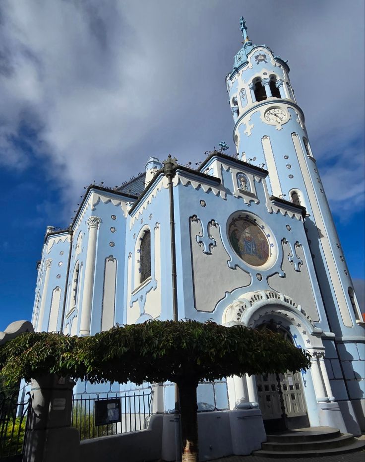 Nicht direkt in der Altstadt, sondern ein paar Schritte entfernt, aber unbedingt einen Besuch wert, ist die Sankt-Elisabeth-Kirche (Kostol svätej Alžbety). Aufgrund ihrer Farbe wird sie auch als „Blaue Kirche“ bezeichnet. Nicht nur die Farbe, sondern auch der Jugendstil macht diese 1907/1908 erbaute Kirche, die der Heiligen Elisabeth von Thüringen geweiht ist, zu etwas Besonderem. Leider ist der Innenraum nicht geöffnet, aber durch ein Gitter hinter der Eingangspforte konnten wir zumindest ein Blick in das Innere werfen. Und wer – wie wir – danach eine Pause einlegen möchte, dem sei das charmante Café Fertucha (Grösslingova 27) empfohlen, insbesondere die leckeren gefüllten Buchteln, ein Nationalgebäck. Köstlich – und auch das Preisniveau kann sich sehen lassen.