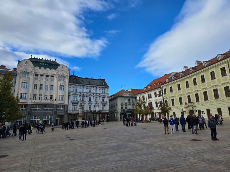 Vom Wiener Hauptbahnhof fahren regelmäßig REX-Züge an die zwei Bahnhöfe der Stadt: nach Petržalka im Süden und zum Hauptbahnhof Hlavna Stanica nördlich der Altstadt, die Fahrt dauert etwa 1 Stunde. Das Bratislava Ticket bringt euch nicht nur hin und wieder zurück, sondern beinhaltet auch ein Tagesticket innerhalb von Bratislava. Beide (Fuß-)Wege in die Altstadt von Bratislava sind wenig charmant; ab Bratislava Petržalka könnt ihr über die Donau in die Altstadt laufen (Staré Mesto, dauert aber 30-45 Minuten) oder diverse Bus- und Straßenbahnlinien nutzen. Vom Hauptbahnhof ist es etwas näher, ihr könnt den (wie gesagt wenig charmanten) Fußweg aber immerhin nutzen, um beim 1760 erbauten Palais Grassalkovich (Grasalkovičov palác) vorbeizuschauen, Residenz des Präsidenten der Slowakei. Dieser barocke Stil ist charakteristisch für viele Gebäude in der Altstadt, ein Kulturerbe des 18. Jahrhunderts.