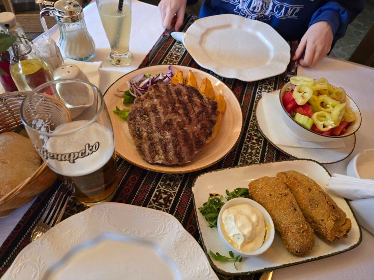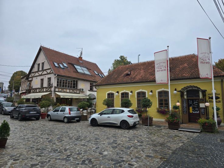 Mit dem schon erwähnten Gratis-Bussystem fahren wir nach Zemun, ehemals eigenständig, heute ein Stadtteil von Belgrad an der Donau. Zunächst besteigen wir einen kleinen Hügel, auf dessen Spitze der Gardos-Turm thront. Von dort haben wir einen – leider regentrüben – Blick über die Altstadt und die Donau bis nach Belgrad City in der Ferne. Anschließend flanieren wir am Donauufer entlang, durch die nicht spektakuläre, aber nette Altstadt und über einen quirligen Markt, mit sämtlichen Produkten, die ein serbischer Haushalt so braucht. Das ist für uns der Charme von Zemun: serbisches Alltagsleben in hübschem Ambiente und fast keine Touristen! Um das Serbien-Erlebnis zu krönen, müssen wir natürlich einmal in einem typischen serbischen Restaurant essen und tun das im Ciribu – Ciriba in Zemun. Absolut empfehlenswert, mehr am Ende des nächsten Abschnitts!