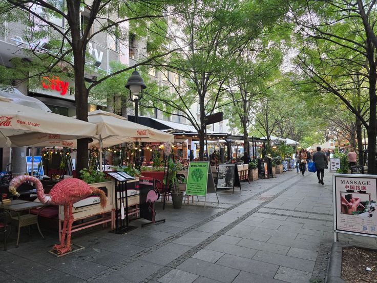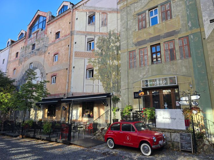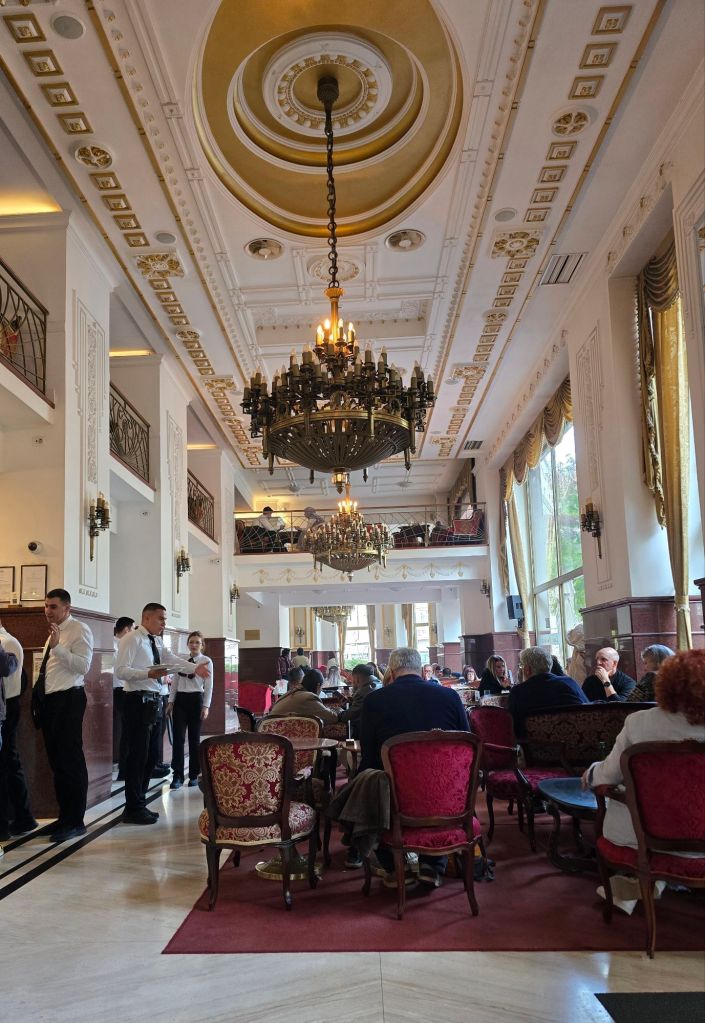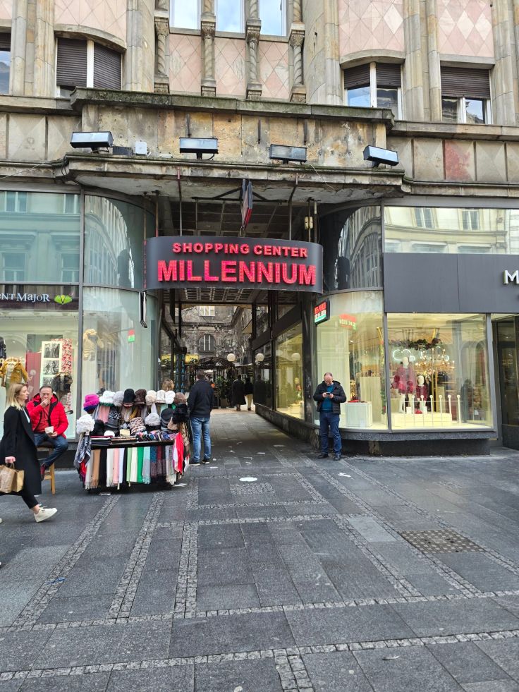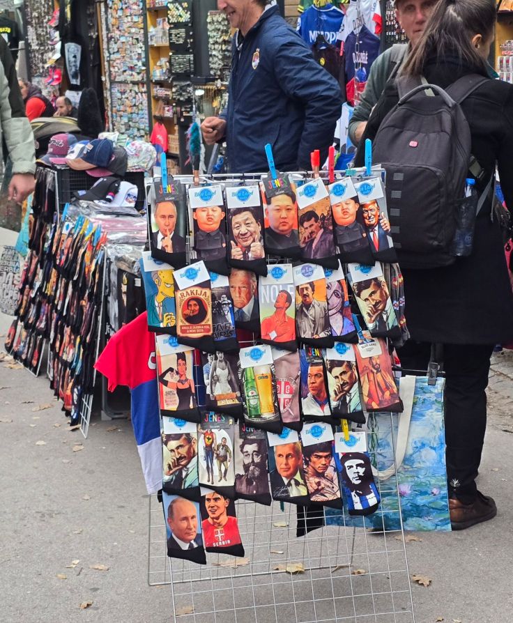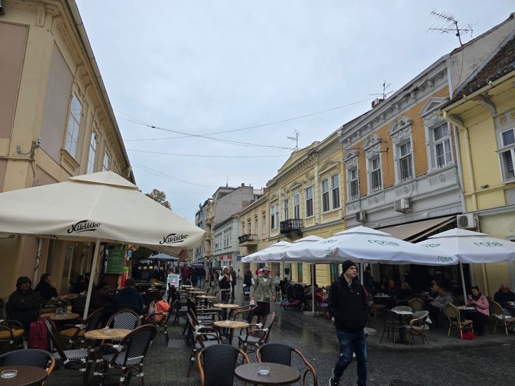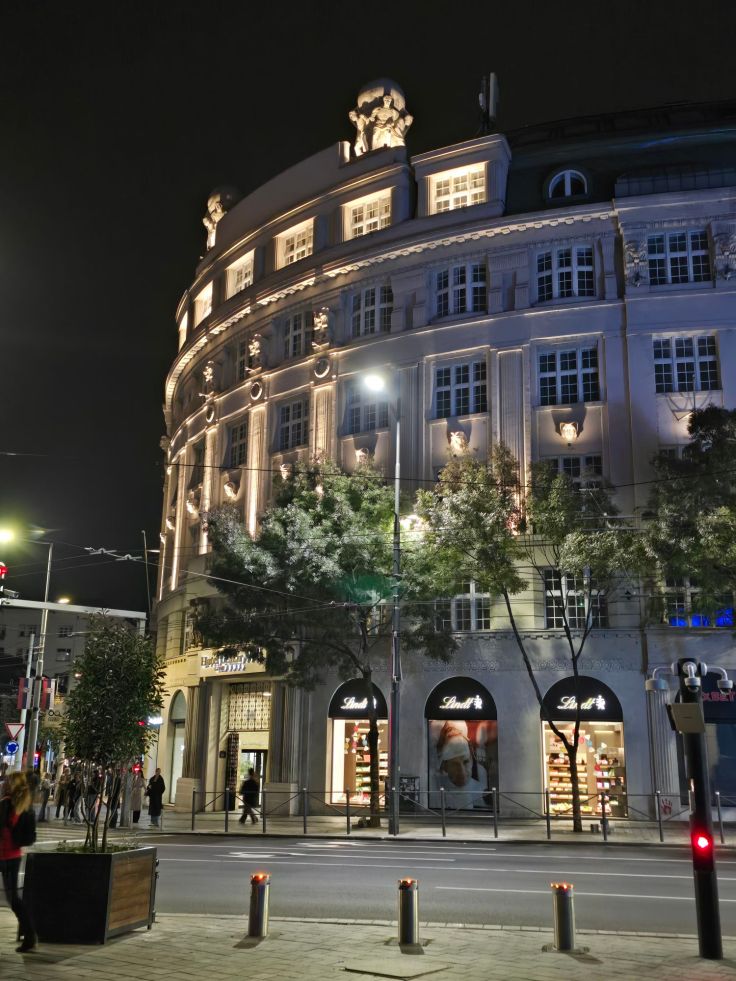 Danach starten wir die Stadterkundung, wir übernachten ja praktischerweise „mitten drin“. Die Kneza Mihaila (auch Knez Mihailova genannt) ist die Haupteinkaufsstraße der Stadt. Hier finden sich zum einen wunderschön sanierte bürgerliche Stadtpaläste neben gesichtsloser sozialistischer Zweckarchitektur und vereinzelt dem Verfall preisgegebene Gebäude. Es überwiegt jedoch bei weitem der „gute Eindruck“, der durch das quirlige Treiben und viele Flanierende nochmals positiv verstärkt wird. Das Warenangebot ist bunt gemischt, neben vielen international bekannten Marken finden sich auch uns unbekannte, offenbar serbische, Marken sowie, vor allem in den Nebenstraßen, viele Cafés. Auffällig ist, dass alle 100 Meter ein Popcorn-Stand steht – das scheint der Lieblingssnack der Belgrader zu sein. Wir holen uns an einer der Straßenbars einen Aperol Spritz und eine Matcha Latte – zusammen für umgerechnet weniger als 7 Euro, wohlgemerkt in der Haupteinkaufsstraße!
