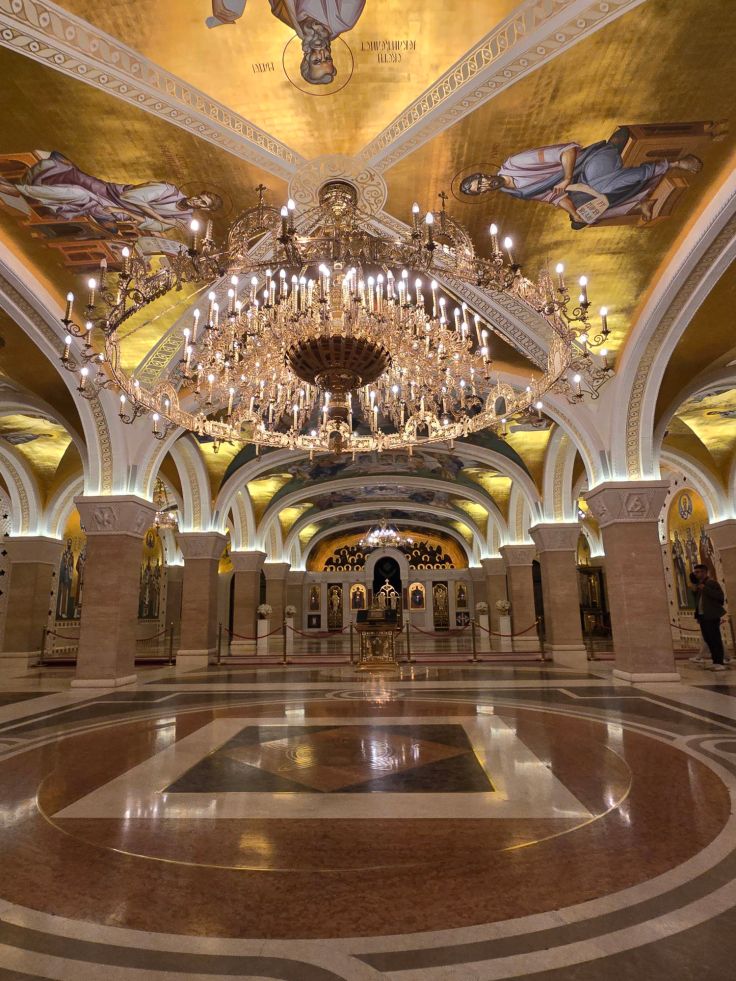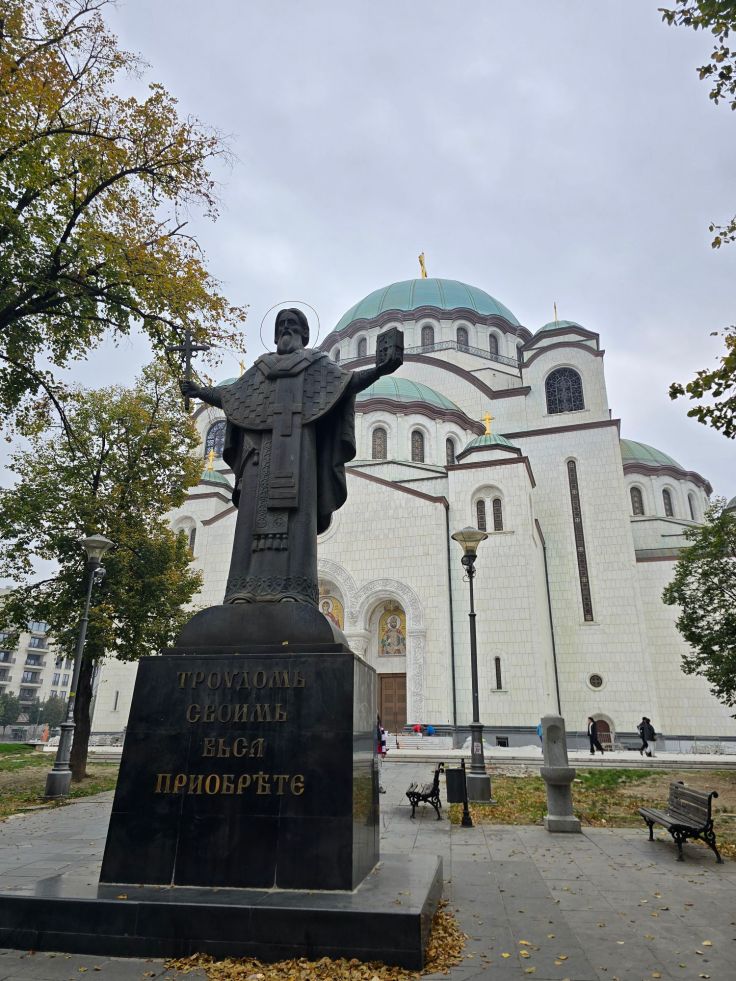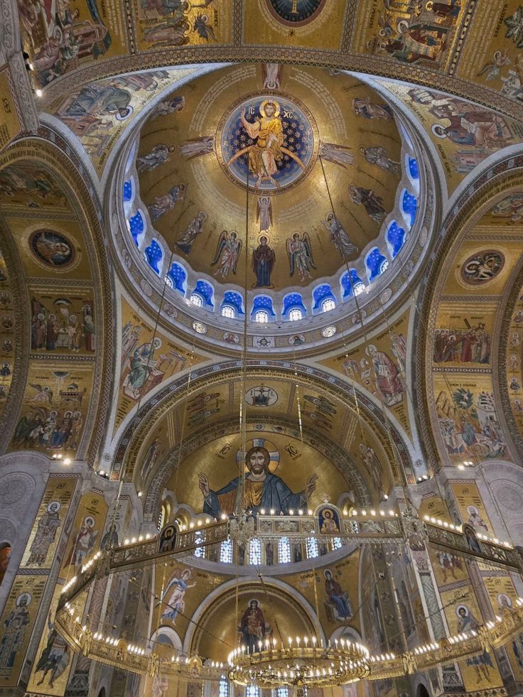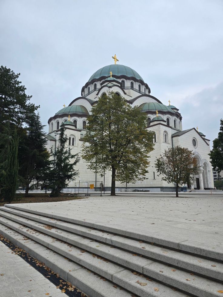 Für uns das beeindruckendste Bauwerk Belgrads ist der Dom des heiligen Sava (Eintritt frei). Er liegt etwas außerhalb des Zentrums – wie praktisch, dass Belgrad die erste (und bislang einzige) Millionenstadt weltweit ist, die einen komplett kostenfreien öffentlichen Nahverkehr bietet! Dieses serbisch-orthodoxe Gotteshaus im neobyzantinischen Stil erinnert an die Hagia Sophia in Istanbul und ist mit einer Höhe von 79 Metern und mehr als 3.000 Quadratmetern Grundfläche eine der größten orthodoxen Kirchen weltweit. An dieser Stelle soll Sinan Pascha 1595 die sterblichen Überreste des heiligen Sava verbrannt haben lassen. Der Bau der Kirche begann 1935, aber bedingt durch Kriege und das kommunistische Regime wurde die Kuppel erst 1989 fertiggestellt und, nach Vollendung des Innenausbaus, schließlich 2004 offiziell für die Gläubigen eröffnet. Die deutlich moderner wirkende Krypta wurde sogar erst 2015 vollendet. Der Innenraum ist größtenteils mit Gold-Mosaiken gestaltet, eine wahre Pracht, an der wir uns kaum sattsehen können. Wie in orthodoxen Gotteshäusern üblich, gibt es keine Stühle, der Gottesdienst erfolgt im Stehen. Stattdessen sind überall Ikonen aufgestellt, die die Gläubigen der Reihe nach küssen. Auch die benachbarte kleine Kirche des hl. Sava solltet ihr unbedingt anschauen!